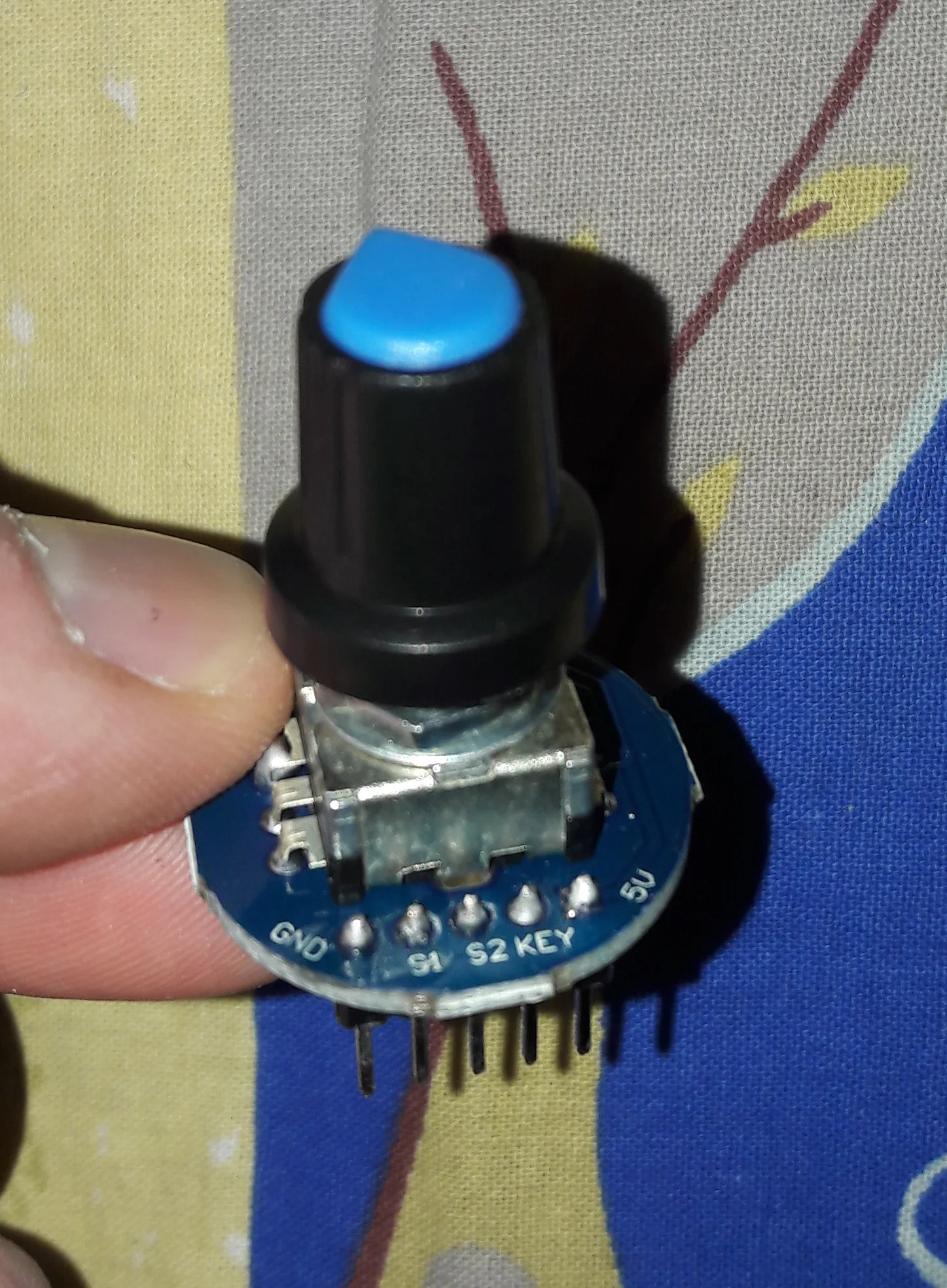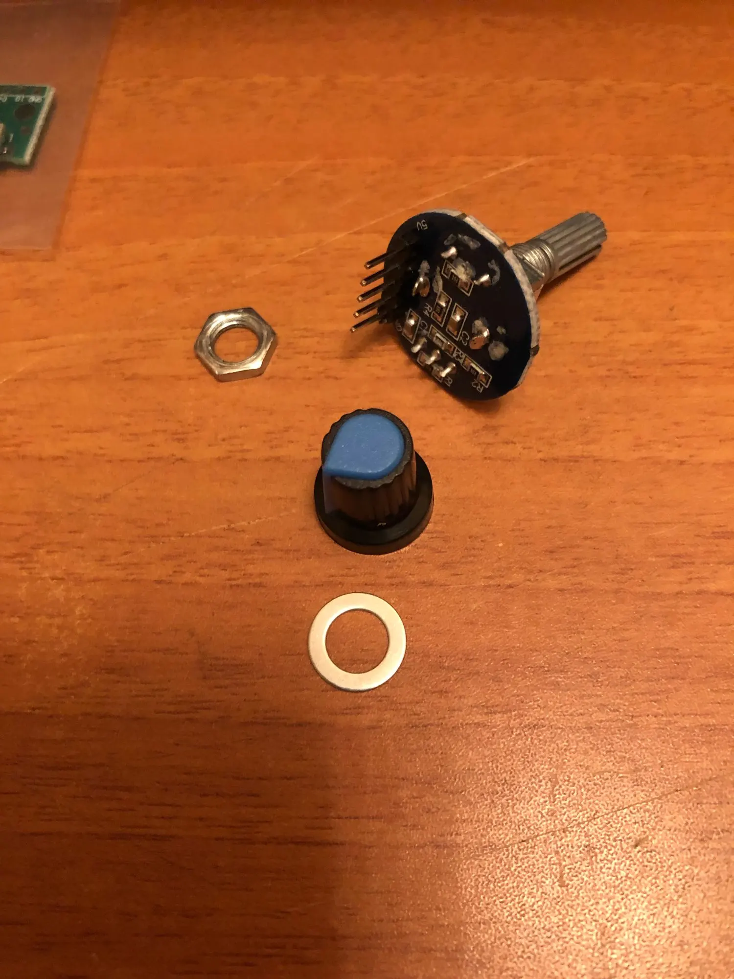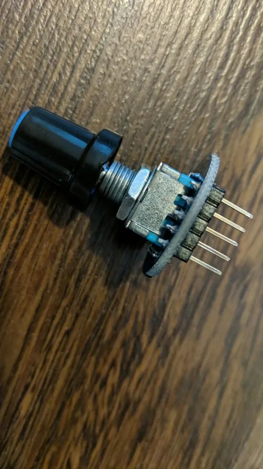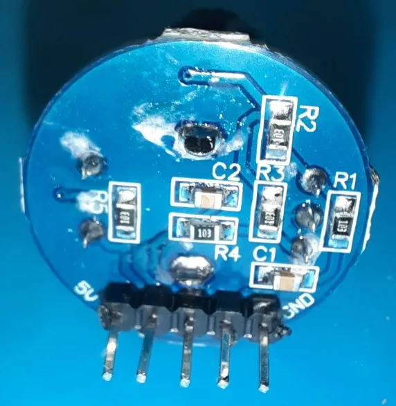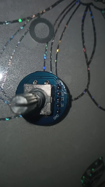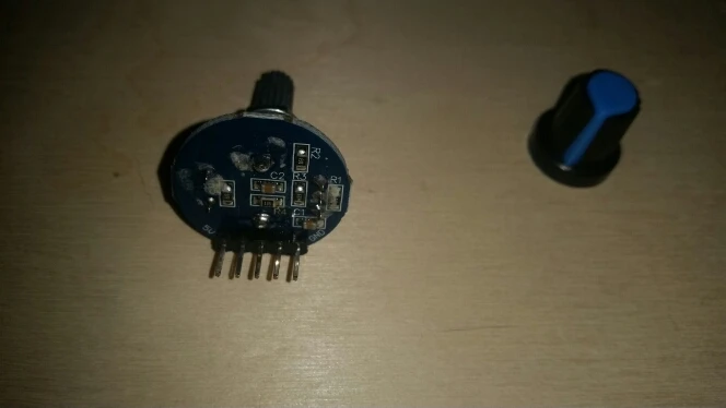 Усё прыйшло як мае быць - праверыў, энкодэр працуе. І круцілка, і кнопка. Адзінае толькі што дзіўныя плямы на плаце, спадзяюся праблем не будзе.