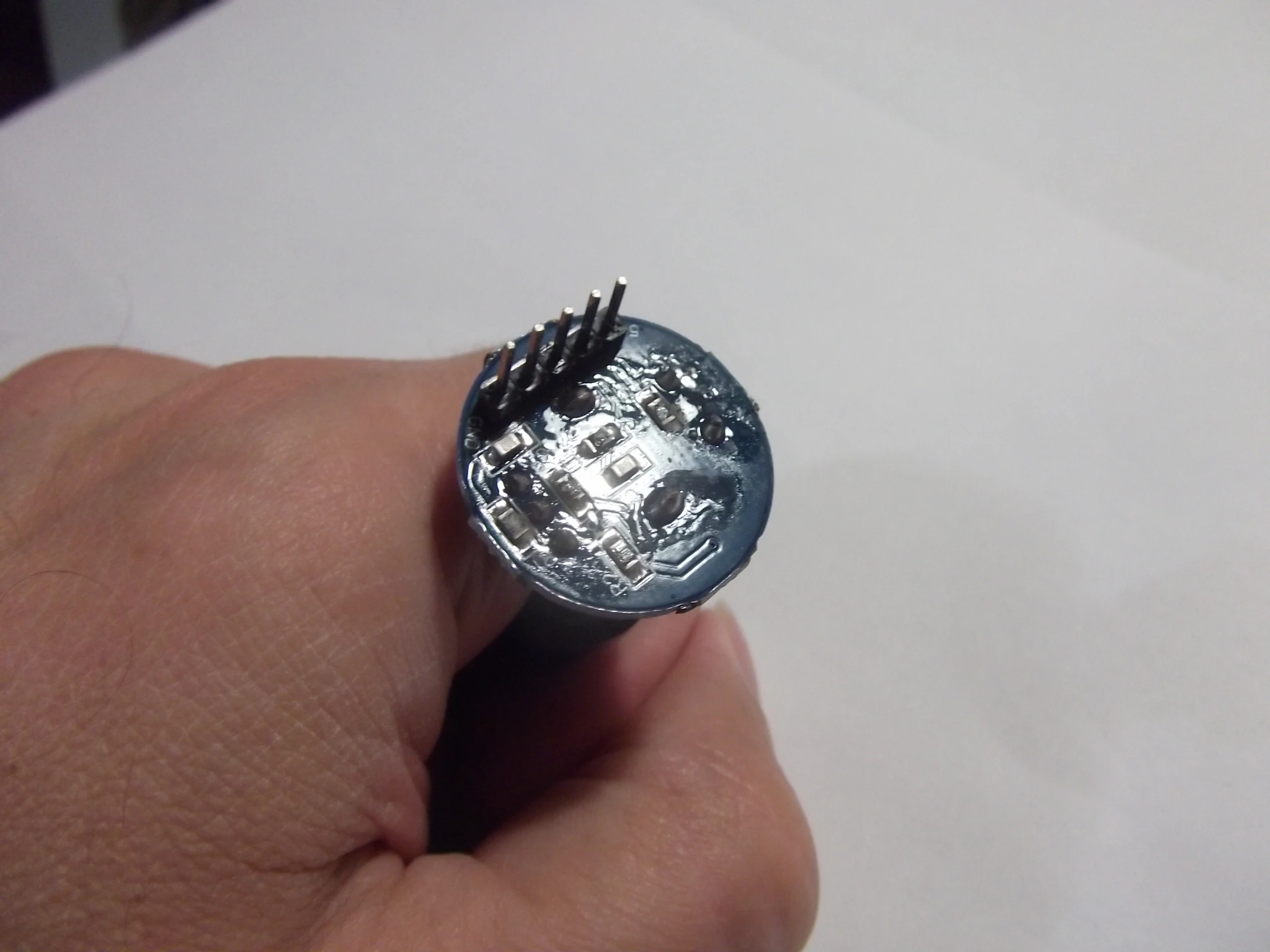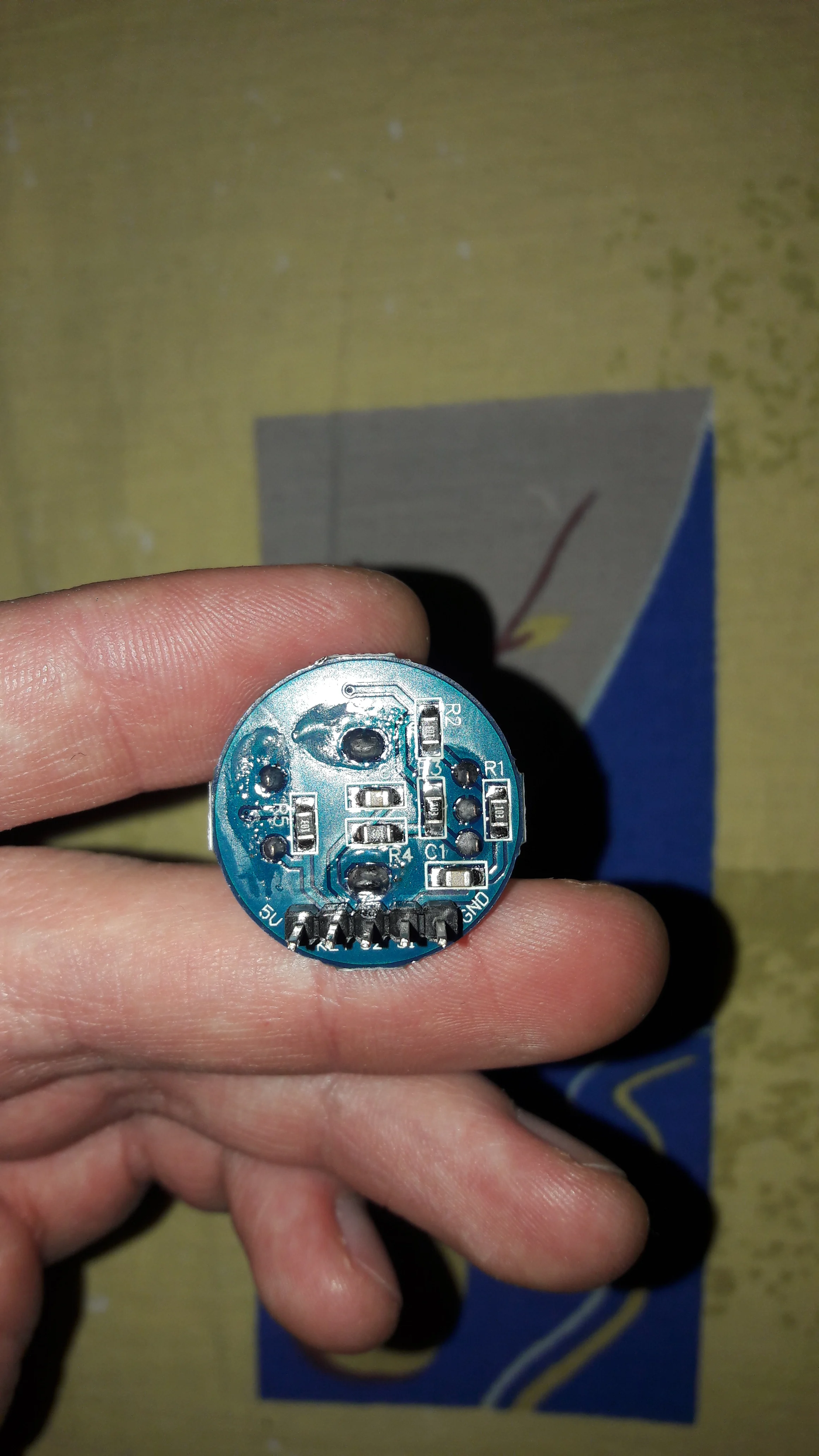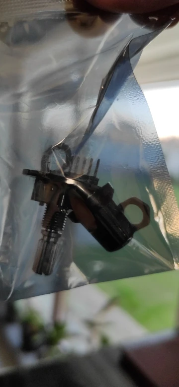 Усё прыйшло як мае быць - праверыў, энкодэр працуе. І круцілка, і кнопка. Адзінае толькі што дзіўныя плямы на плаце, спадзяюся праблем не будзе.