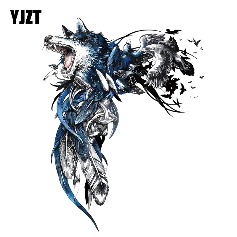 YJZT 13,2 см * 17,6 см, модная наклейка с волком и перьями, ПВХ, наклейка на мотоцикл, автомобиль, 11-00500