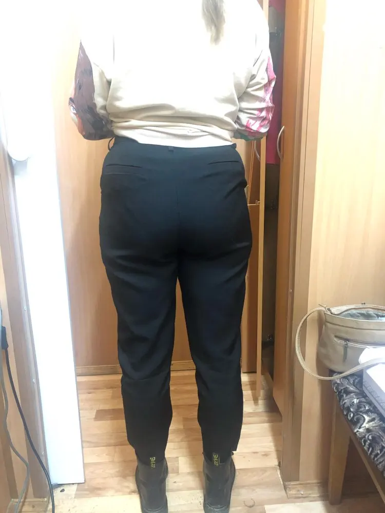 Не первый мой заказ этих брюк, до этого брала в другом цвете. Присутствует небольшой запах, но он выветрился после 1 стирки. Кое-где встречаются ниточки, но это не критично. На свой размер s взяла m, но можно было бы взять и поменьше. Брючки померила сразу и сфотографировала, после стирки и глажки брюки выглядят очень здорово . Доставка тоже порадовала - очень быстрая