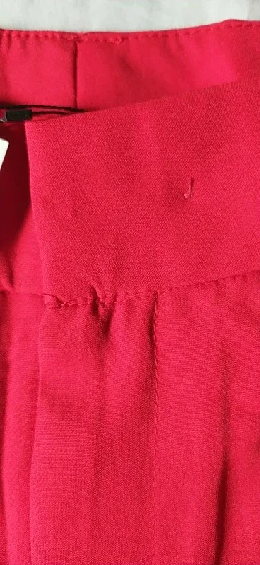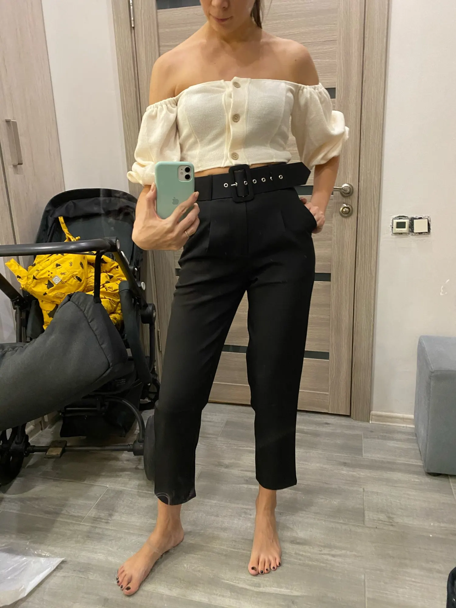 Штаны пришли очень быстро, в Иркутск дней за 20 примерно. Но так и должно быть, ведь доставка ускоренная. Сами штаны не плохие, но и не идеальные. Есть свои недостатки. Подобные штаны видела в Zara. Эти брюки неприятно пахнут. Постирала, запах все равно остался, но не такой сильный. Ремень тоже стирала, но пахнуть меньше не стал. Но за километр не воняет, конечно. Есть мелкие нитки, это не проблема, обрезал и все. Ткань блестящая, немного дешевит. И чуть какое солнце сразу жарко становится. Сидит тоже 50/50. Вроде бы ничего, но могло быть и лучше. Брала размер s на параметры 69-92. Хотелось бы посвободней в бедрах, но тогда талия велика была бы. Штаны застегиваются прям по талии. Внутри есть пуговичка и железная застежка. Брала с купоном за 1004 рубля. Носить можно. За 1000 рублей это вполне годная вещь.