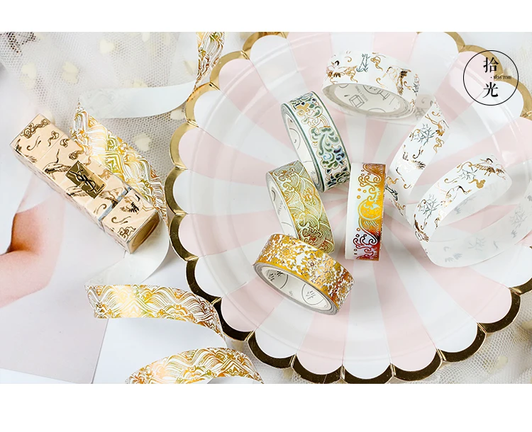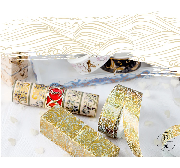 Декоративная лента для скрапбукинга, в китайском стиле, с золотым узором