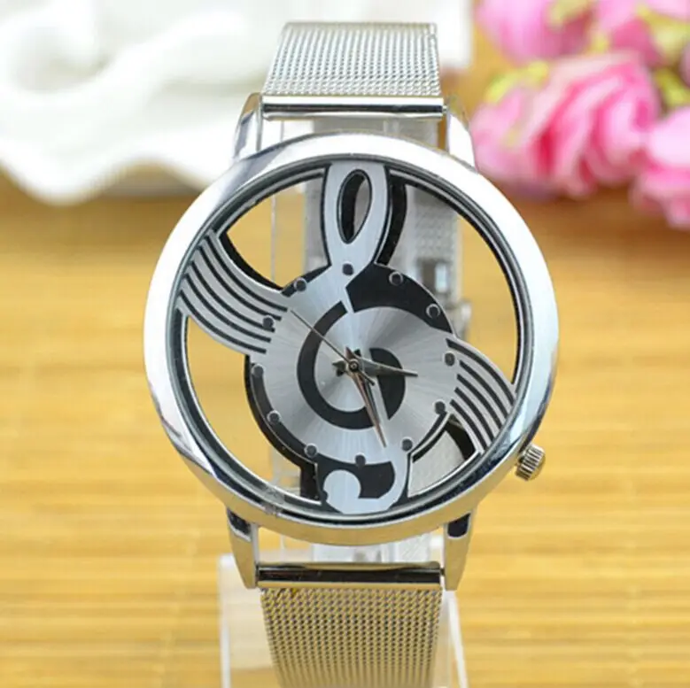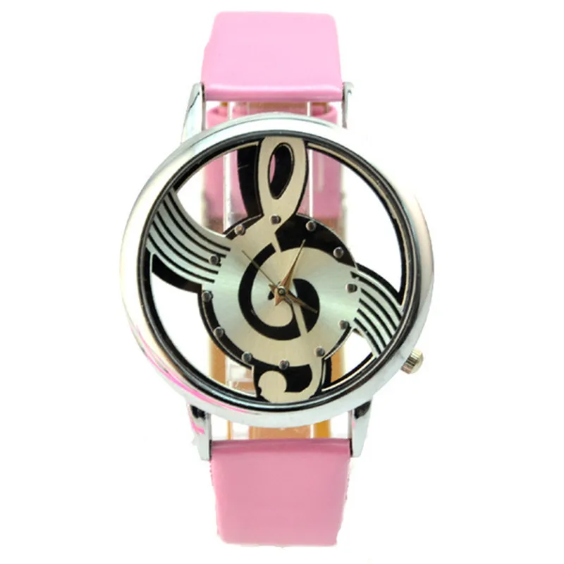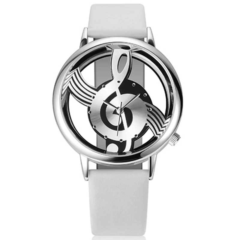 Часы мужские, водонепроницаемые, с кожаным ремешком, с изображением музыкальных нот