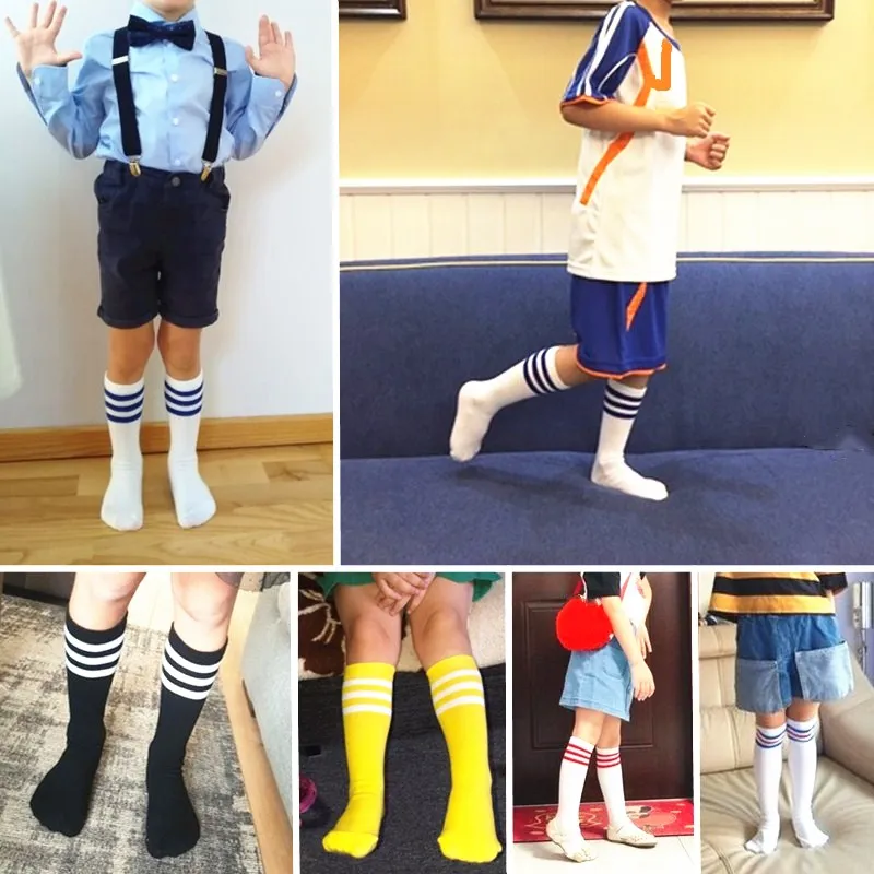 Детские гольфы для девочек и мальчиков, хлопковые спортивные белые носки в полоску для школы, детские длинные теплые гольфы без пятки для скейта