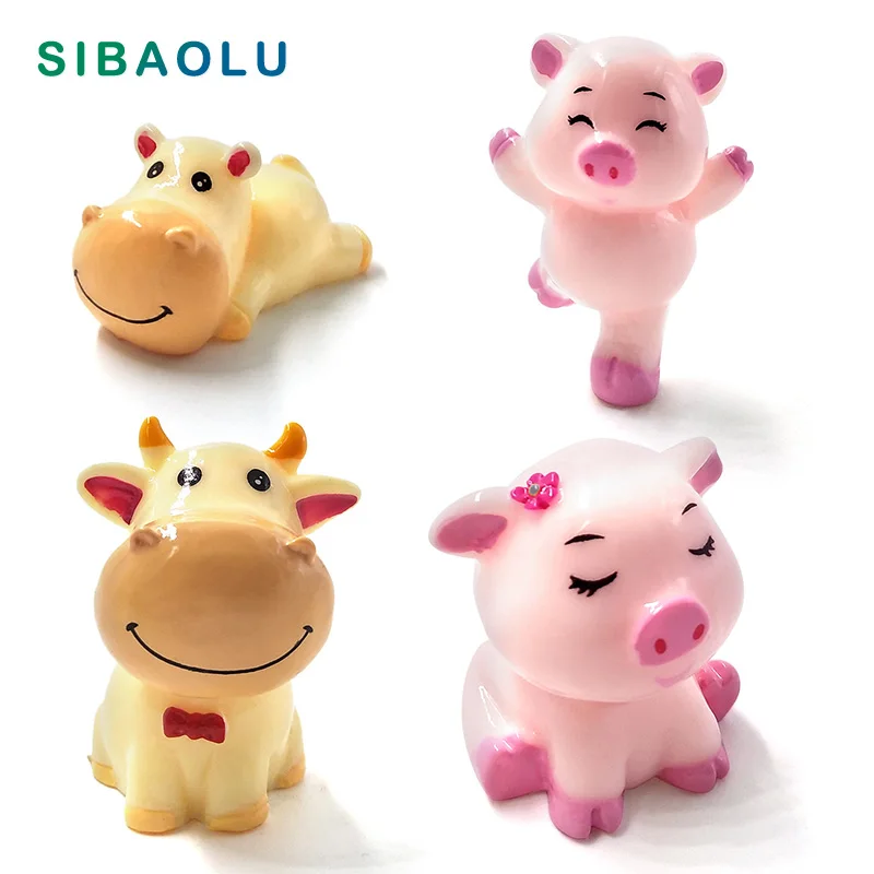 Милая свинья корова семья Смола ремесло модель животных фигурка домашний декор миниатюрное украшение для сада в виде Феи аксессуары микро пейзаж