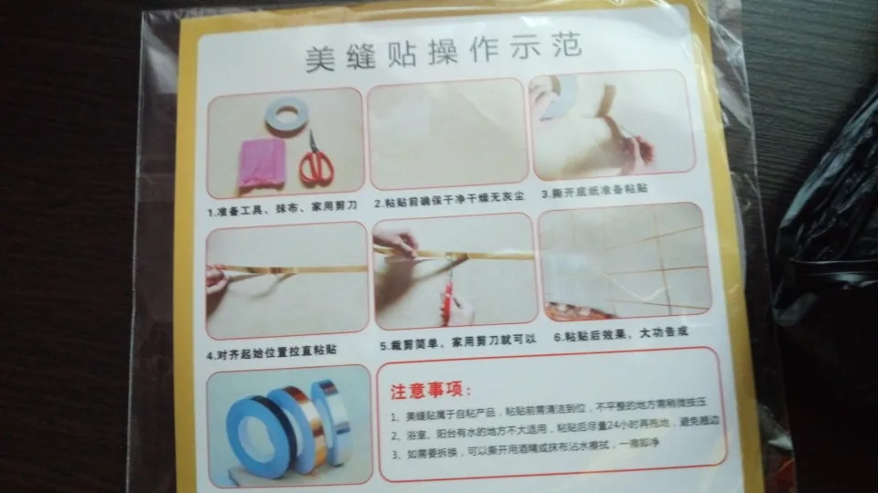 заказ пришел быстро. Инструкция по применению приложена в картинках с описанием на китайском) Ленты в рулоне достаточно, наклеивается очень удобно, но если зацепить край, также легко отклеивается и обратно уже не прилипает . Присутствуют небольшие заусенции по краю ленты, нужно подрезать, но это не критично. в общем и целом товаром довольна.