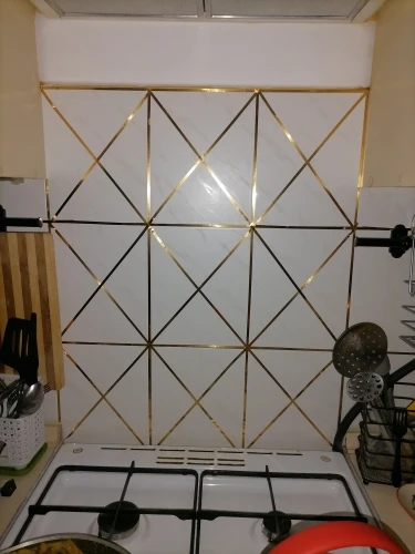 Думаю, что идеально будет смотреться только на ровной поверхности, такой как плитка, например. Приклеил на стык плитки и паркета - получилось неочень. Как-будто скотч метализированный. В целом, товар хороший. Пригодится.