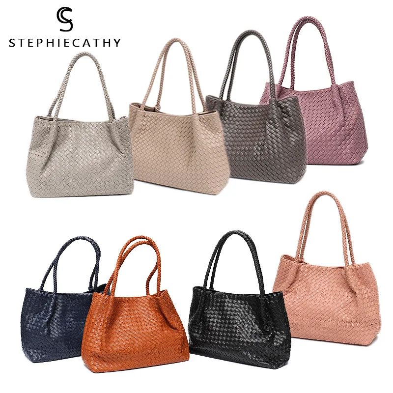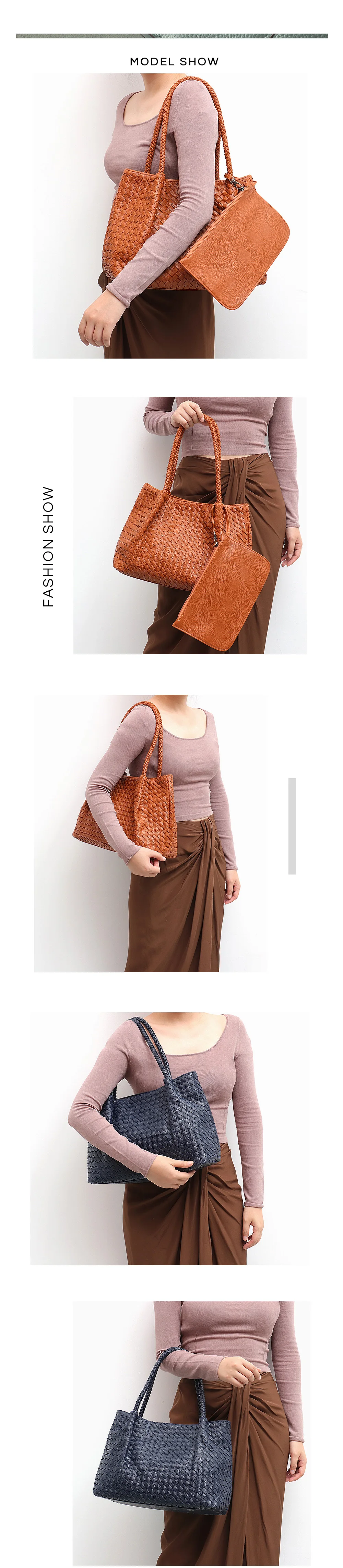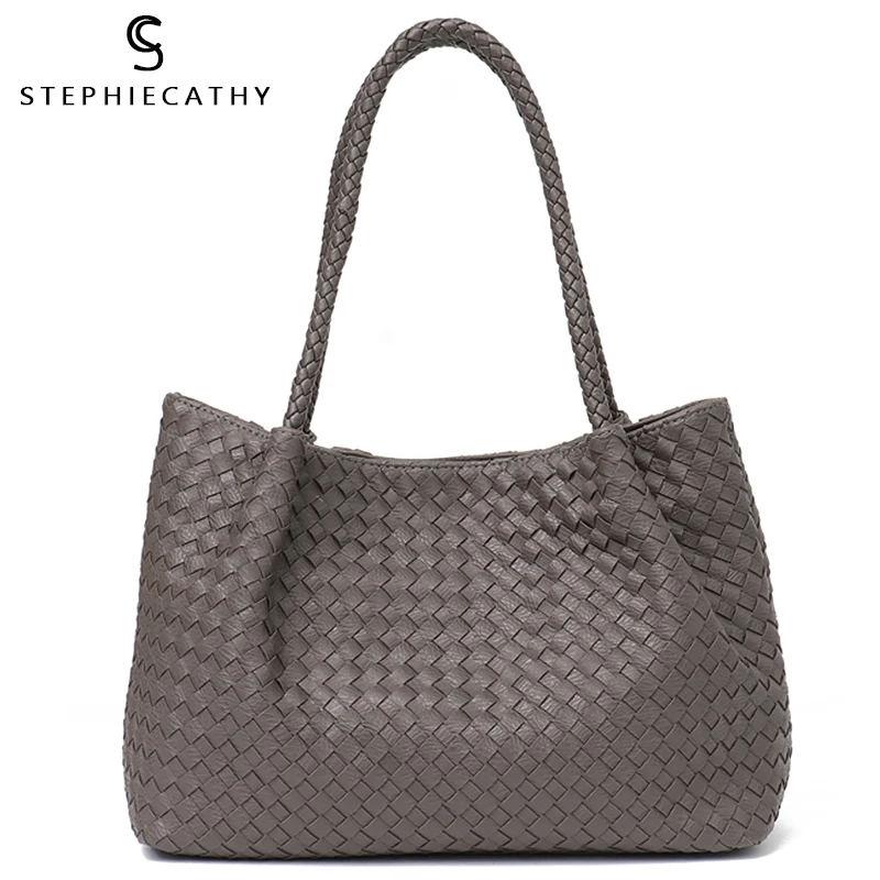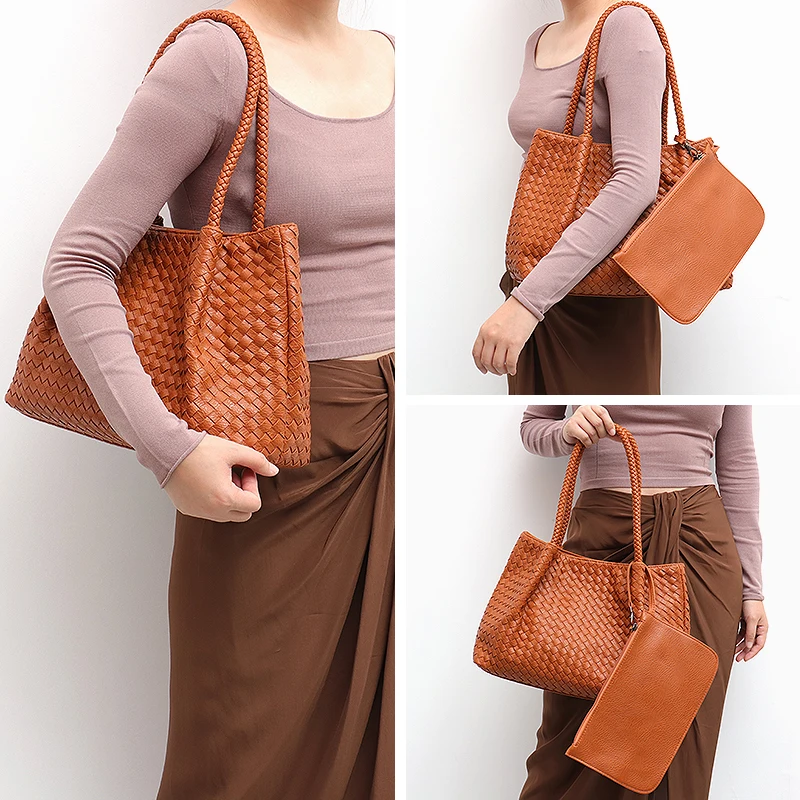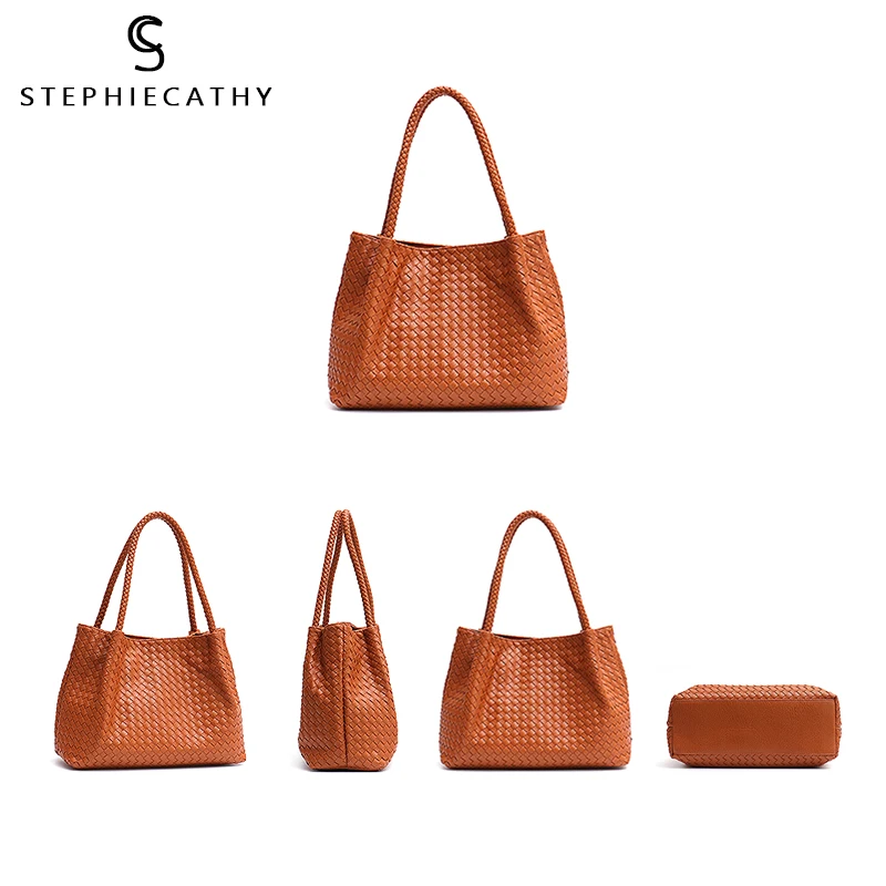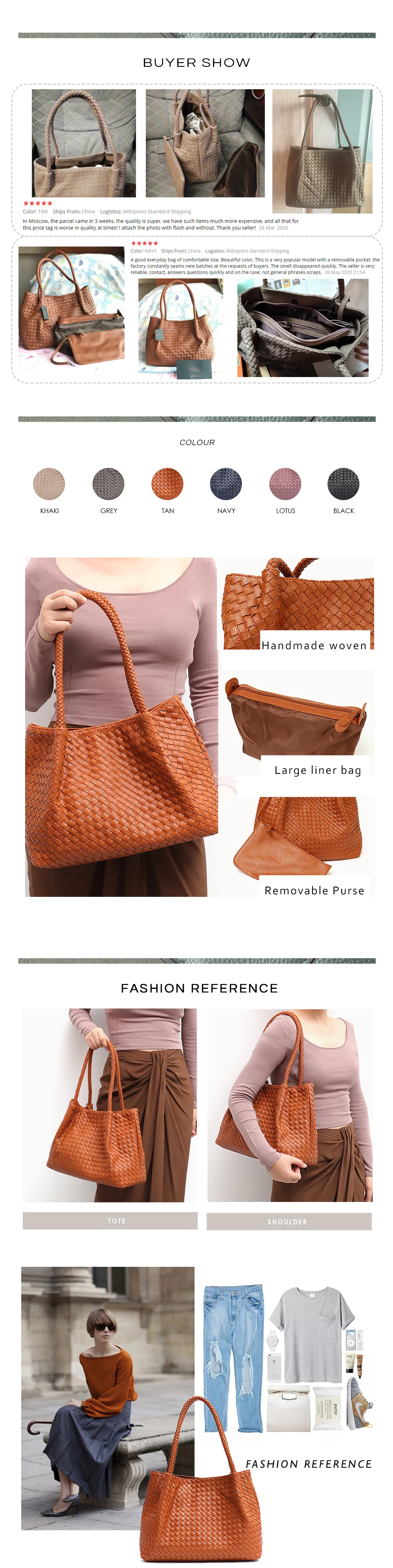 SC женская кожаная сумка-тоут через плечо, женская большая Высококачественная ручная работа, тканая женская сумка через плечо с ручкой и сумочкой