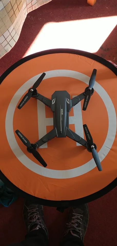 Размер трека идеален, не слишком большой или слишком маленький для среднего дрона. В моем случае это fimi x8 se 2020. Складывается и снимается очень легко. Фиксация является пластиковой, но все еще выполняет свои функции на земле. Возьмите с собой клейкие Светоотражающие Полоски, но я их не использовал. Дрон обнаруживает его Идеально для точного посадки.