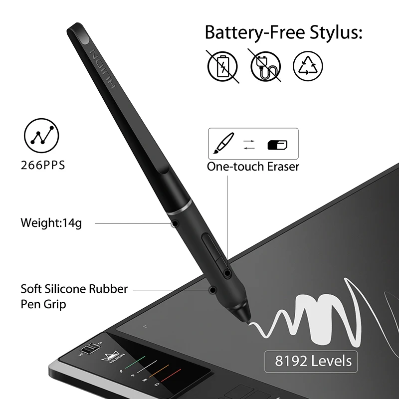 Графический планшет HUION Giano WH1409 V2, беспроводной планшет для рисования со стилусом, 8192 уровней нажатия, функция наклона