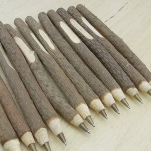 40 шт.лот, винтажная деревянная Экологически чистая шариковая ручка с веточкой, ручка для свадьбы, принадлежности для школы и офиса