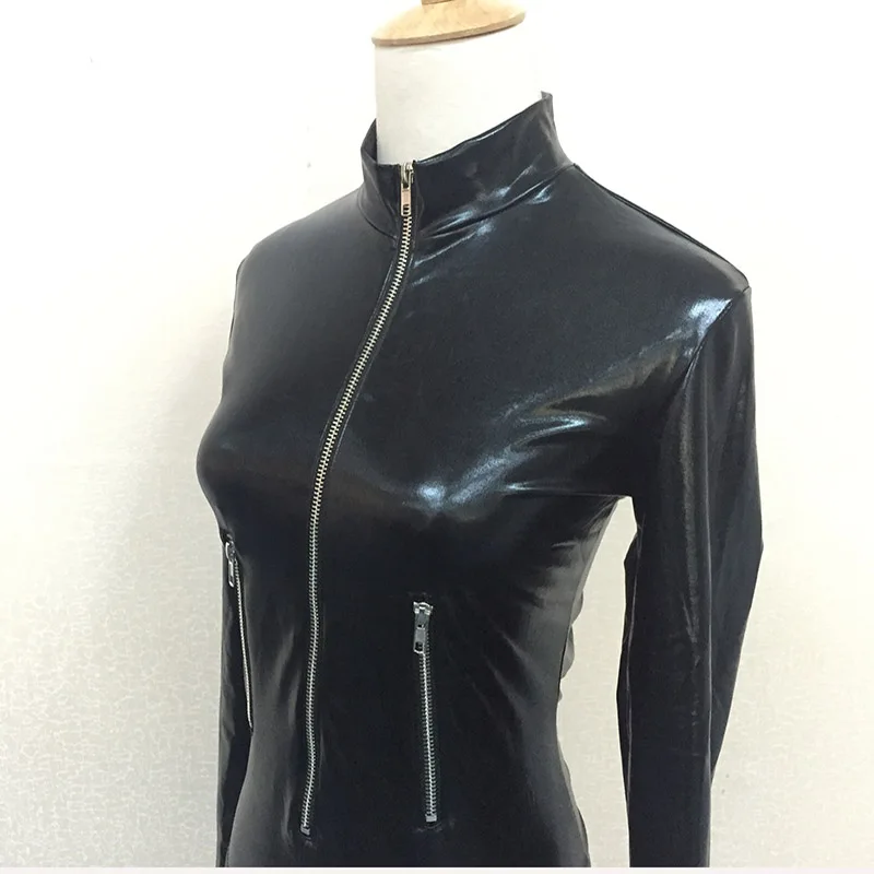 Нижняя одежда из черной кожи Liva Girl, искусственная кожа, женская модель 2019, модные комбинезоны из искусственной кожи на молнии, Клубные костюмы