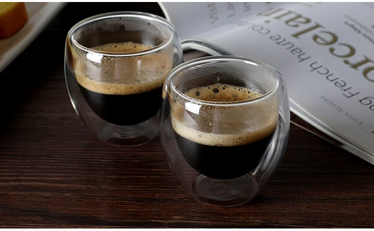 Набор из 2 или 6 шт. креативных термостойких стеклянных кофейных чашек с двойными стенками для чая, латте, эспрессо, кофейных кружек 80 мл200 мл