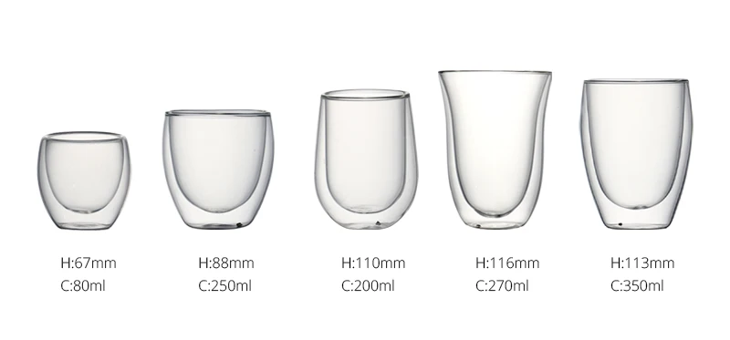 Материал: высококачественное боросиликатное стеклоТехнология: ручная работаЕмкость:80 мл ≈ 2,7 oz (применимо к эспрессо, или вкус чая)200 мл ≈ 6,8 oz (применимо к макиато, Con Panna, капучино, латте, Чай)250 мл ≈ 8,5 oz (применимо к макиато, Con Panna, капучино, латте, Чай, сок)270 мл ≈ 9,2 oz (применимо к макиато, Con Panna, капучино, латте, Чай, сок, американский Кофе)350 мл ≈ 11,9 oz (применимо к латте, капучино, американский Кофе, сок, иначе сок напитков)