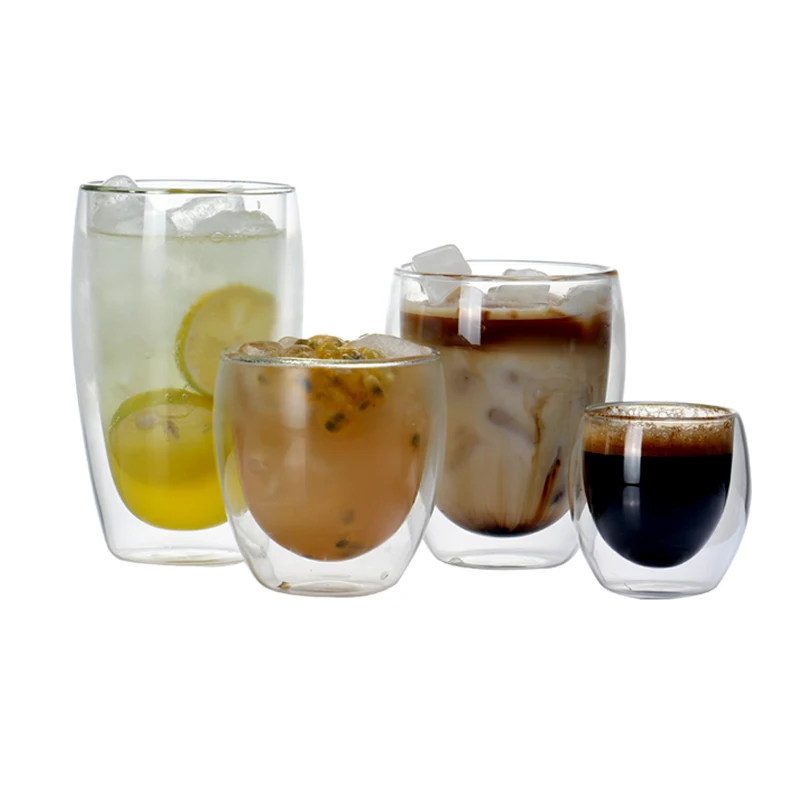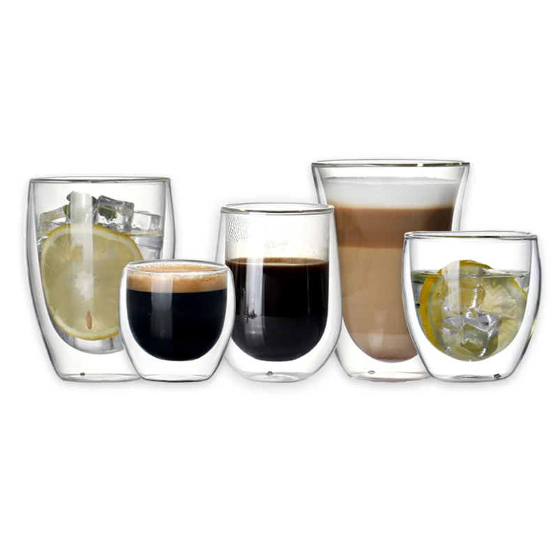 Комплект из 2 предметов, 6 штук в партии, с двойными стенками термостойкие Стекло Кофе бумажных стаканчиков, Чай, латте, чашка для эспрессо 80 мл/200 мл/250 мл/270 мл/350 мл