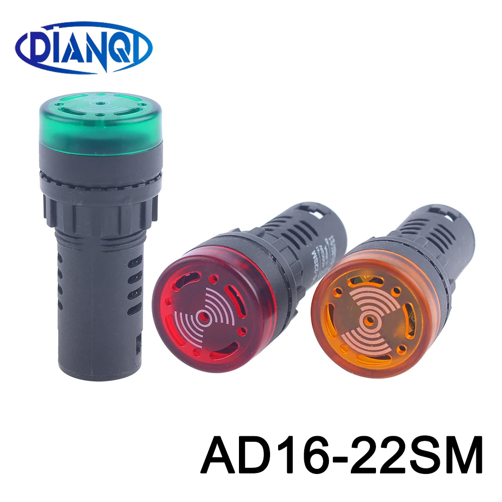 Цветной AD16-22SM с креплением на панель, светодиодсветильник лампа с активным зуммером и звуковым сигналом, красный зеленый желтый цвет, 12 В, 24 В, 220 В, 22 мм