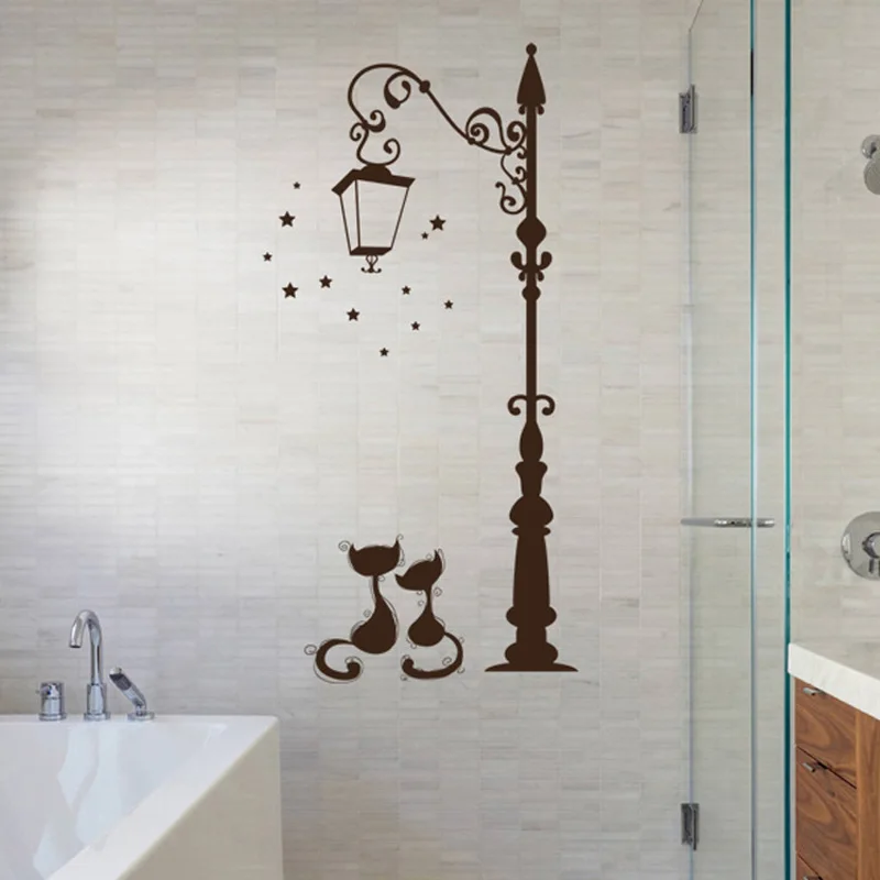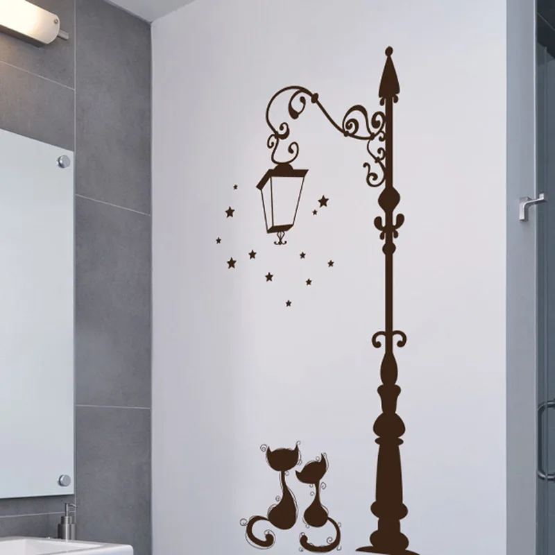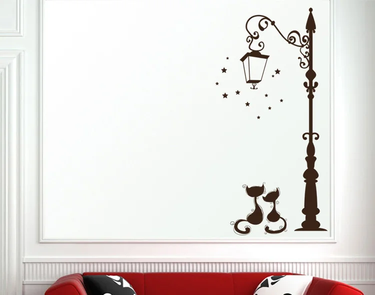 Кошки под уличсветильник том стикер стены романтический фон для украшения дома Настенные обои художественные наклейки любовь Кошка Стикер
