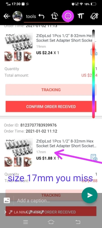 Заказывал головку на 17мм прислали на 18мм. Открыл спор,удовлетворили без вопросов... жду бабки..