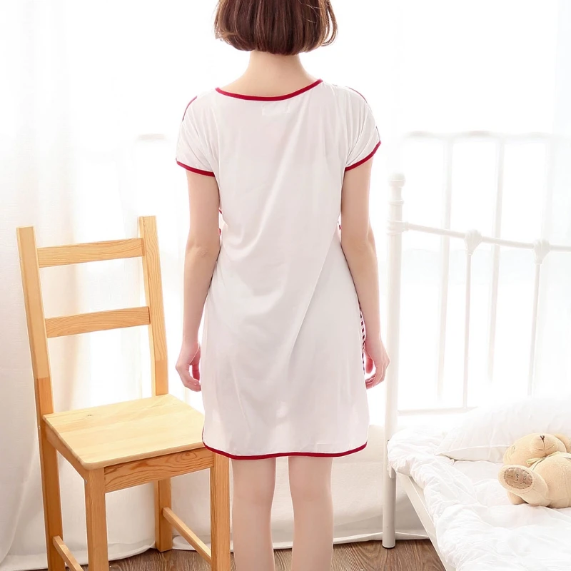 Женское летнее платье с коротким рукавом для сна с милым мультяшным принтом, ночная рубашка большого размера плюс, ночная рубашка для молодых девушек Описание: Особенности: 100% новый и высокое качество Круглая горловина, выше колен и приятно вместительная посадка для дополнительного комфорта. Ночные рубашки большого размера удобно пропускают воздух, чтобы сохранять потливость. Эти женские рубашки для сна, изготовленные из милых мультяшных узоров, являются идеальным способом короны в любой день. Различные дизайны для этих забавных и сексуальных ночнушек, чтобы наслаждаться днем и ночью дома. Ночная рубашка с принтом из ледяного шелка и полиэстера; Удобная трикотажная мягкая на ощупь. Эта ночная рубашка предназначена для посередине между коленями, вместительной проймой и коротким рукавом, простой стиль пуловера. 1 Пижама с короткими рукавами, другие аксессуары на фото не включены! Спецификация: Материал: ледяной шелк, полиэстер Цвет: A #62 синий, B #75 серый, C #77 розовый, D #79 серый, E #80 розовый, F #87 оранжевый, G #88 серый, H #98 серый, I #99 розовый красный, J #9 черный и белый, K #14 черный и белый, L #37 пурпурно-красный Размер: один размер Длина: 85,5 см Рукав: 11 см Ширина плеч: 38 см Обхват груди: 100 см Количество: 1 шт. Теплая подсказка: 1. Азиатский размер на 1 или 2 размера меньше, чем европейский и американский. 2. Обратите внимание, что при низкой температуре стирать, не отбеливать и не помещать под ПЫЛАЮЩЕЕ солнце в течение довольно длительного времени. 3. В связи с использованием разных методов измерения, возможно отклонение на 1-3 см в отношении товаров, пожалуйста, убедитесь, что это нормально для вас перед заказом. 4. Из-за различных мониторов и освещения, изображение может не отражать фактический цвет товара, действительно спасибо за Ваше понимание! Посылка включает в себя: 1 x Пижама с короткими рукавами (без розничной упаковки)