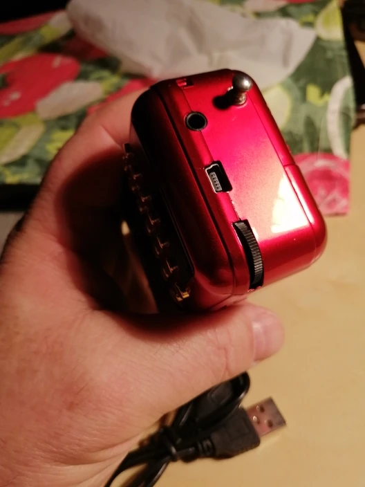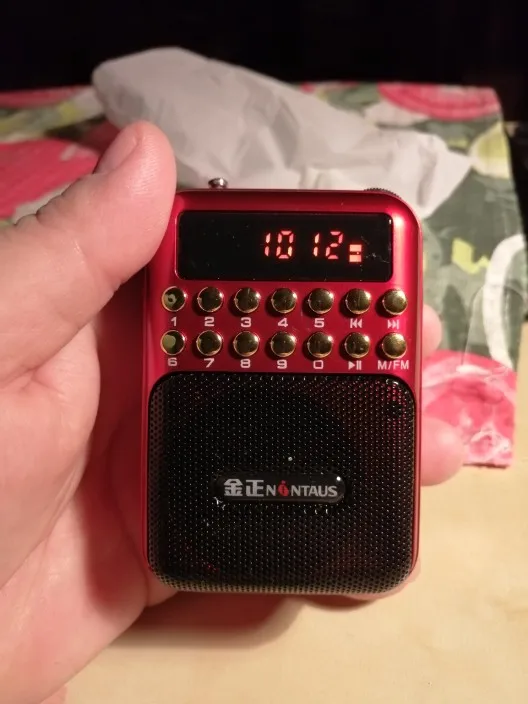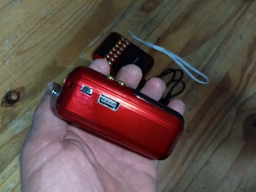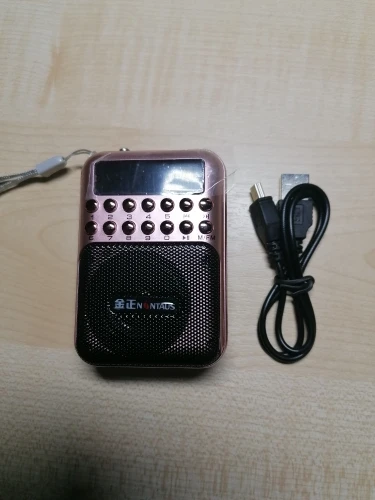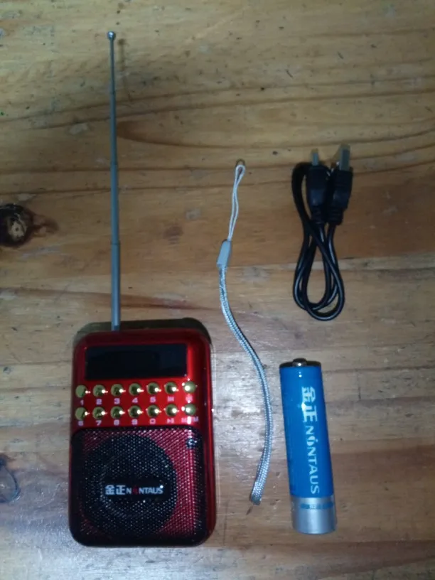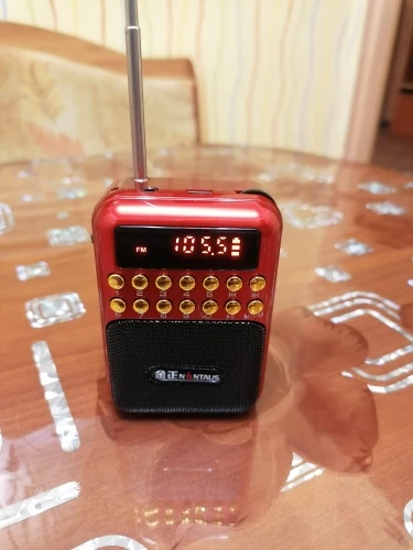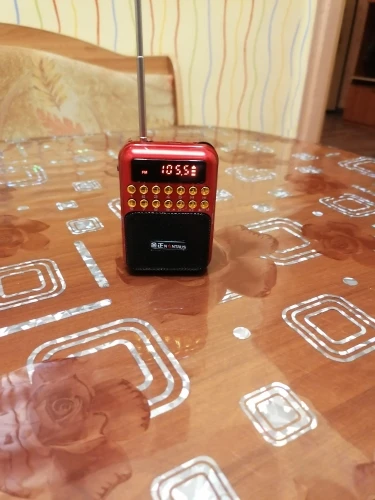 Приёмничек очень маленький, но звук неплохой для такого недомерка. На самом деле по размерам он даже меньше чем указано на картинке на сайте. Высота с антенной видимо, а ширина от балды. Коробки и инструкции не было. Пупырка , пакет и кабель для зарядки. Есть часы и автопоиск станций. Так же запоминает аудиофайлы на месте остановки (хорошо для аудиокниг) При включении сразу начинает проигрывать флешку или карту, если вставлена. Работает без батарейки от сети через зарядку. Но без батарейки забывает станции, время и последний проигранный файл. Аккумулятор в комплекте аж 2600. Ну так по крайней мере на нём написано. А вот отсутствие регулировки звука в наушниках меня удивило. Знал , что без косяка не обойдётся, но это было неожиданно. Громкость в наушниках постоянная, и слишком громкая для меня.