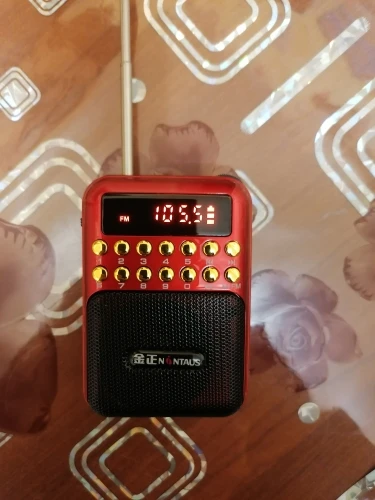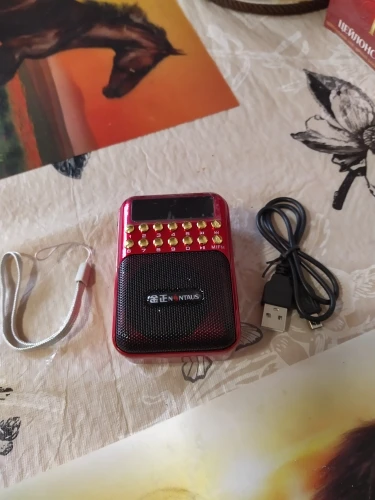 Приемник, как на картинке, пришёл исправный, волны нашёл быстро, в комплекте аккумулятор, заряженный, в принципе всё устраивает, но есть в устройстве и минусы. На включение питания стоит ползунковый переключатель, и регулировка громкости тоже не кнопочная, а так всё отлично, зарядка работает, даже функция часов есть, цвет приятный