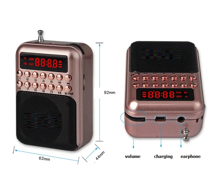Карманное радио, FM-радио, портативный Перезаряжаемый радиоприемник, динамик с поддержкой USB TF карты, музыкальный mp3-плеер