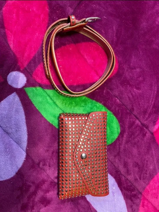 Материал: из искусственной кожи + заклепки, высокое качество.
