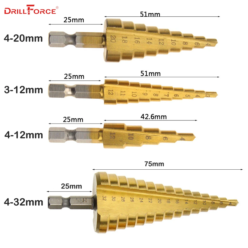 1 шт.: 4-20 мм (4 мм, 6 мм, 8 мм, 10 мм, 12 мм, 14 мм, 16 мм, 18 мм, 20 мм)-9 шагов