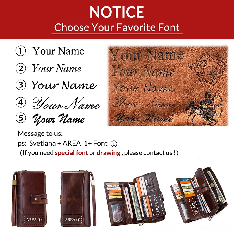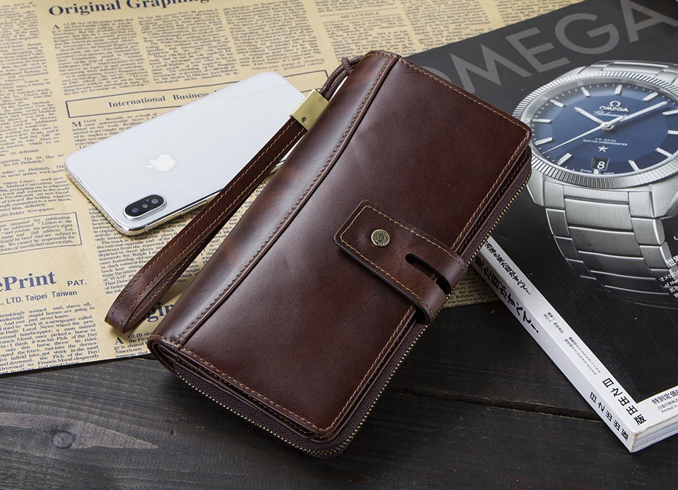Мужской клатч из натуральной кожи, повседневный Длинный кошелек на молнии с отделением для монет и кредитницей, вместительный, для сотовых телефонов с гравировкой