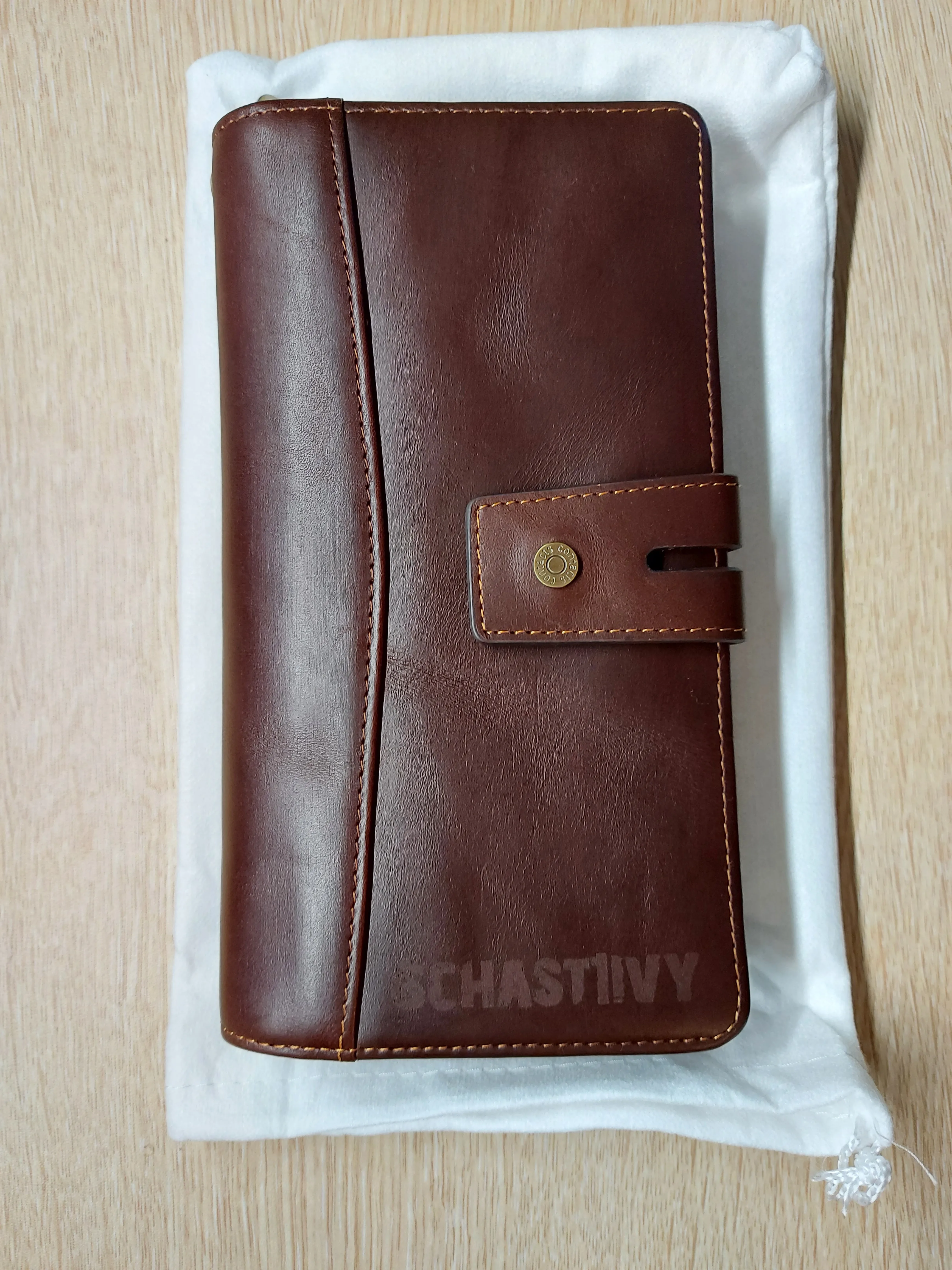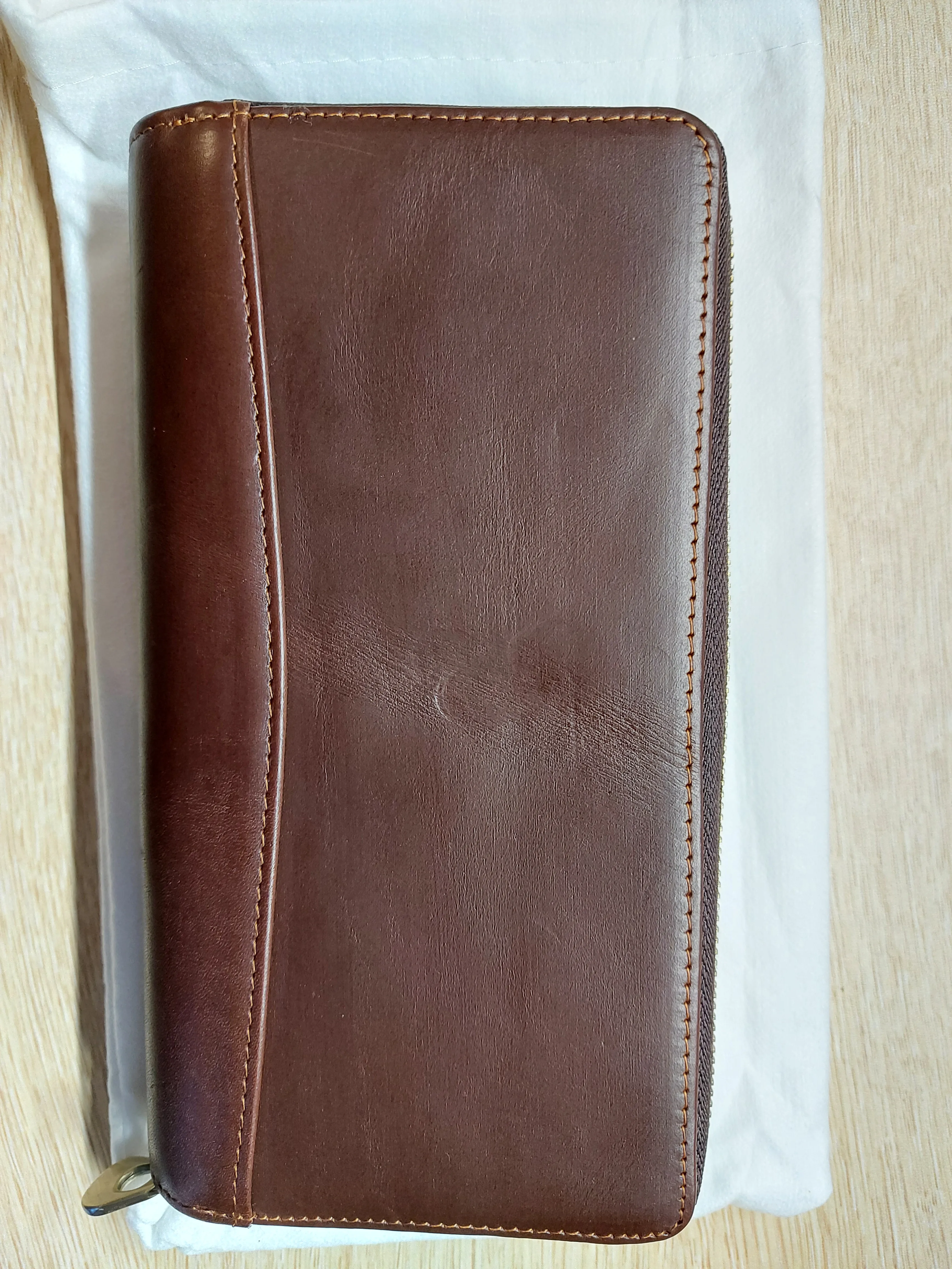 Крайне не советую покупать у продавца. Изображение не соответствует тому что вы заказываете. Вместо коричневого с оттенком бордового как на картинке, пришло что-то ближе к черному (у меня на фото выглядит немного светлее, чем на самом деле). На кошельке большая вмятина посередине, как-будто его сгибали пополам и эти вмятины и рубцы не распрямляются. Заказывал с логотипом. На странице товара так красиво показано как с гравировкой... На самом деле выглядит так как будто мне ножичком вырезали неровно буквы и отправили. Чтобы что-то разглядеть, нужно постараться. Кармашки поначалу слипшиеся между собой каким-то клеем, но вроде не критично. В местах торчат кусочки ниток, но это тоже терпимо. Вывод: крайне разочарован. Переписывался с продавцов. Даже картинку с логотипом отправлял как должно выглядеть. Продавец заверял меня что все будет идеально, но... Обо всем выше написал продавцу - сообщение прочитано, но ответа нет. Не рискуйте, цена слишком высокая.