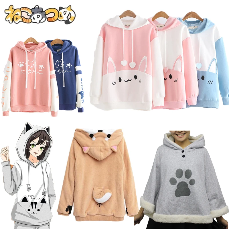 Женские толстовки с капюшоном, Япония, Шиба-ину, доге, Хаски, рилаккума, пуловер с капюшоном, Neko Atsume Cat, толстовка Мяу, пальто, Рождественская Прямая поставка