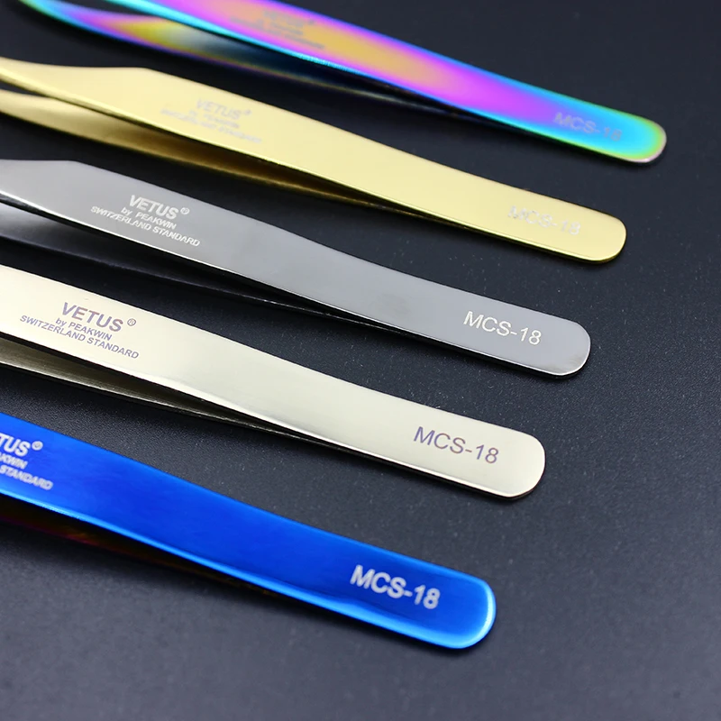 Новый 100% VETUS MCS18 19 Радуга Пинцет для наращивания ресниц Пинцет из нержавеющей стали дельфин Пинцет 5 цветов на выбор