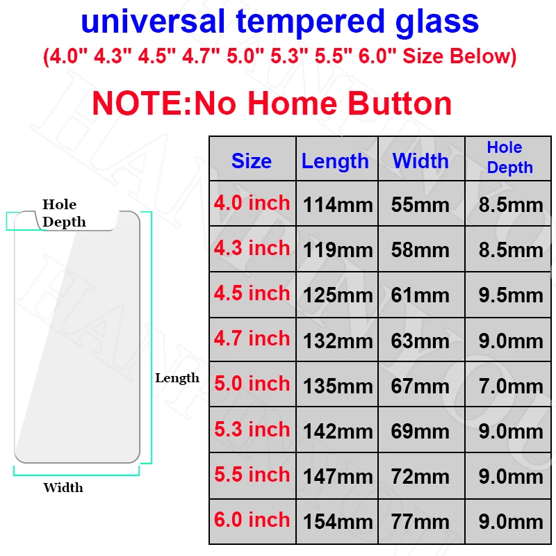 Универсальный 4,0/4,3/4,5/4,7/5,0/5,3/5,5/6,0 дюймов Защитная пленка из закаленного стекла с уровнем твердости 9H 2.5D Премиум Экран защитная пленка