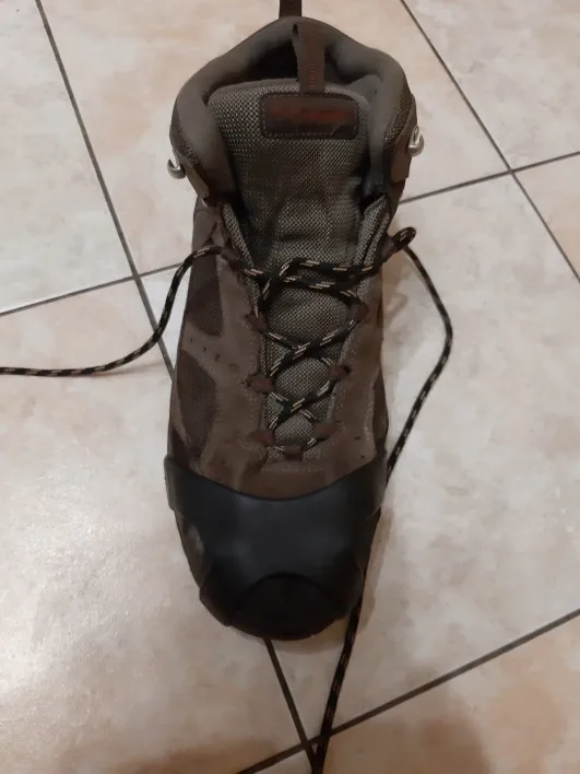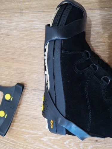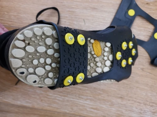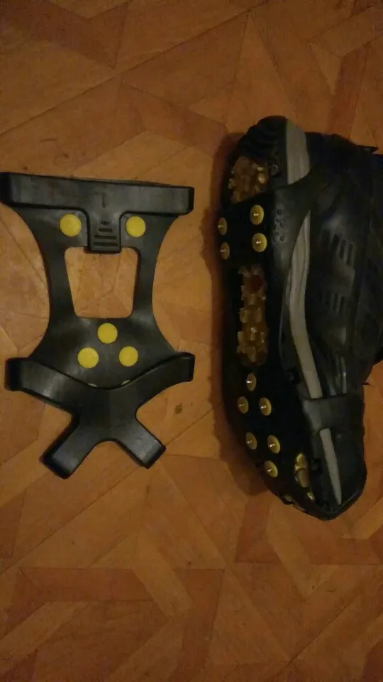 Брал по приколу, посмотреть что это такое. В принципе наверное полезная штука при долгих переходах по льду, для зимней рыбалки наверное подойдёт. На укатанном снегу и льду, держит уверенно, но использовать а городе не рекомендуется, так как на каменном покрытие будете как корова на льду. С размером не понял как выбирать, взял на свой 42 L и как видно из фото, натянуть конечно можно, но примерно как сову на глобус. А на 37 великовато. Так, что смотрите сами, но в целом штука полезная. До СПб шло месяц.