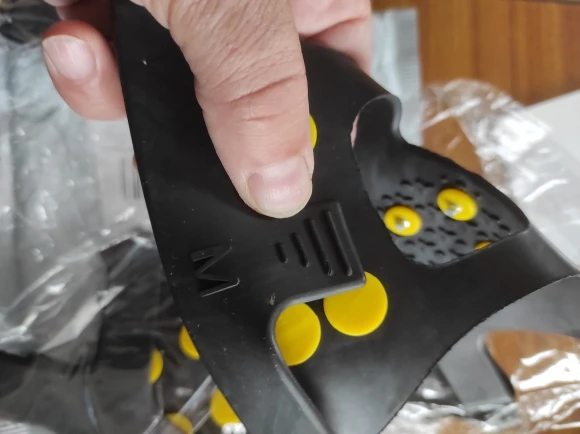Доставка до Гомеля в Беларусь заняла около 35 дней. Трек отслеживался. Упаковано в мягкий конверт. Резина очень мягкая, на морозе не затвердеет и не потеряет эластичность. Резина прямо липнет, соскочить и потеряться не должна. Места в сумке много не займёт, а при гололедице должна выручить. Недавно в Беларуси дождь шёл в мороз, всё было в ледяной глазури, очень этой вещицы не хватало. Люди живущие возле северных морей уже давно наверное освоили, а мы на юге Беларуси не пуганые. Были.