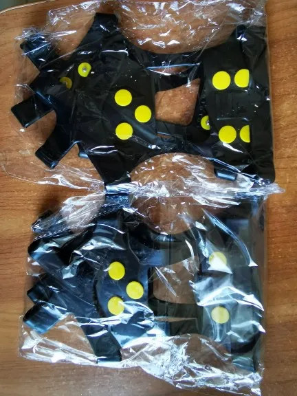До Петербурга посылка шла две недели (20дек-05янв). Шипы взял в связи с участившейся аномалией ледяных дождей. Диаметр шипов 3 мм, высота 3мм, развальцованы шайбами из желтого пластика диаметром 12мм. Лямки изготовлены из резины толщиной 2мм. Как только снова будет каток на улицах, обязательно воспользуюсь! ) Продавцу спасибо, удачных продаж! С НОВЫМ ГОДОМ!!! )))