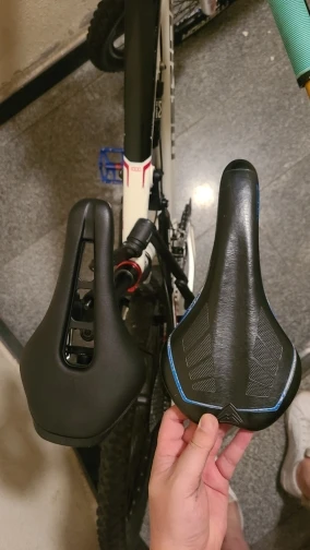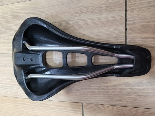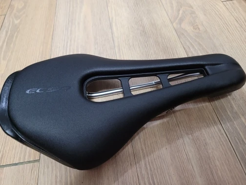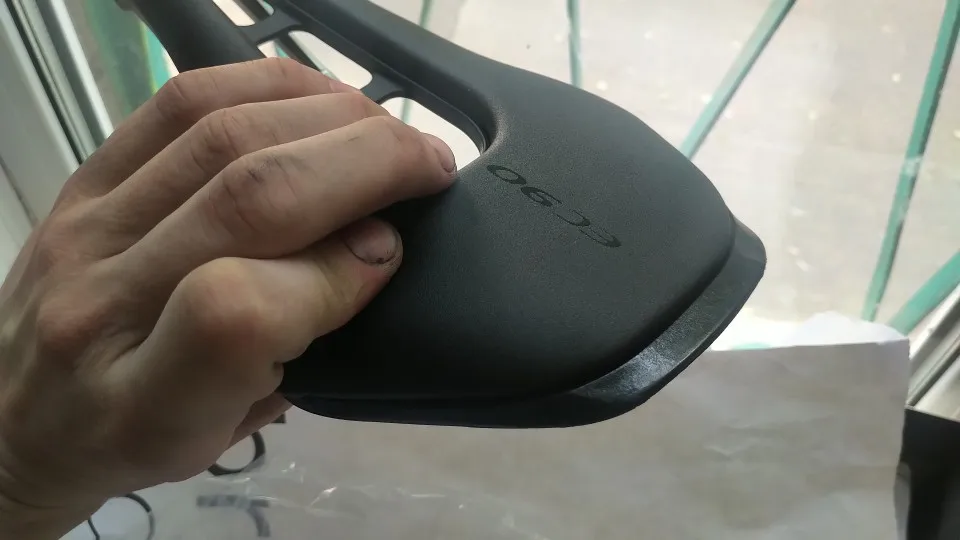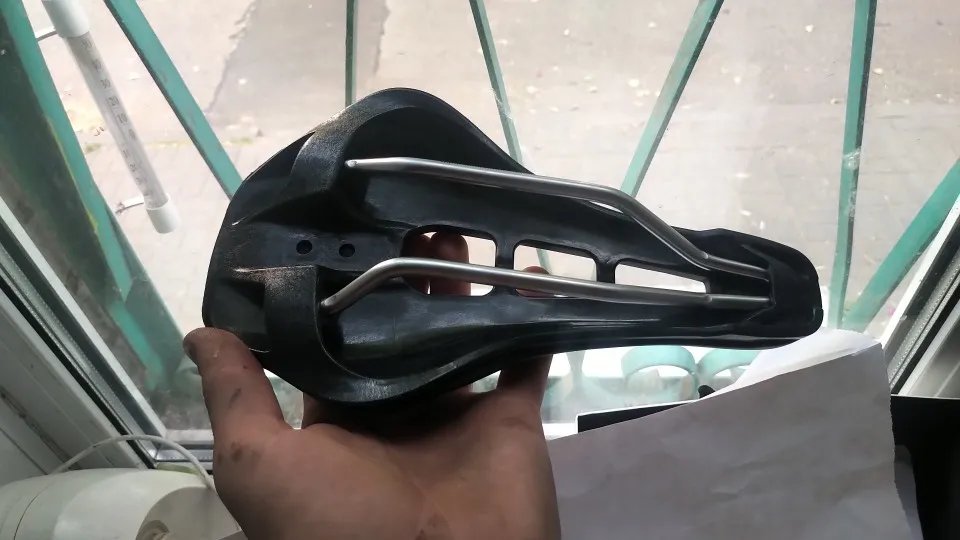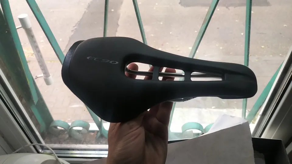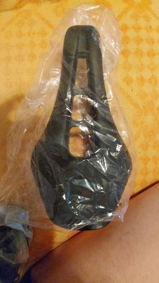 седло на первый взгляд плохого товарного вида. какие то царапины на пластике, сам пластик сомнительного качества. сказать что седло жёсткое не могу, продавливается руками достаточно легко, но не натирает. пока прикатываю его. весьма удобно, но нужен тест на длительный заед от 100км что бы понять какое оно.