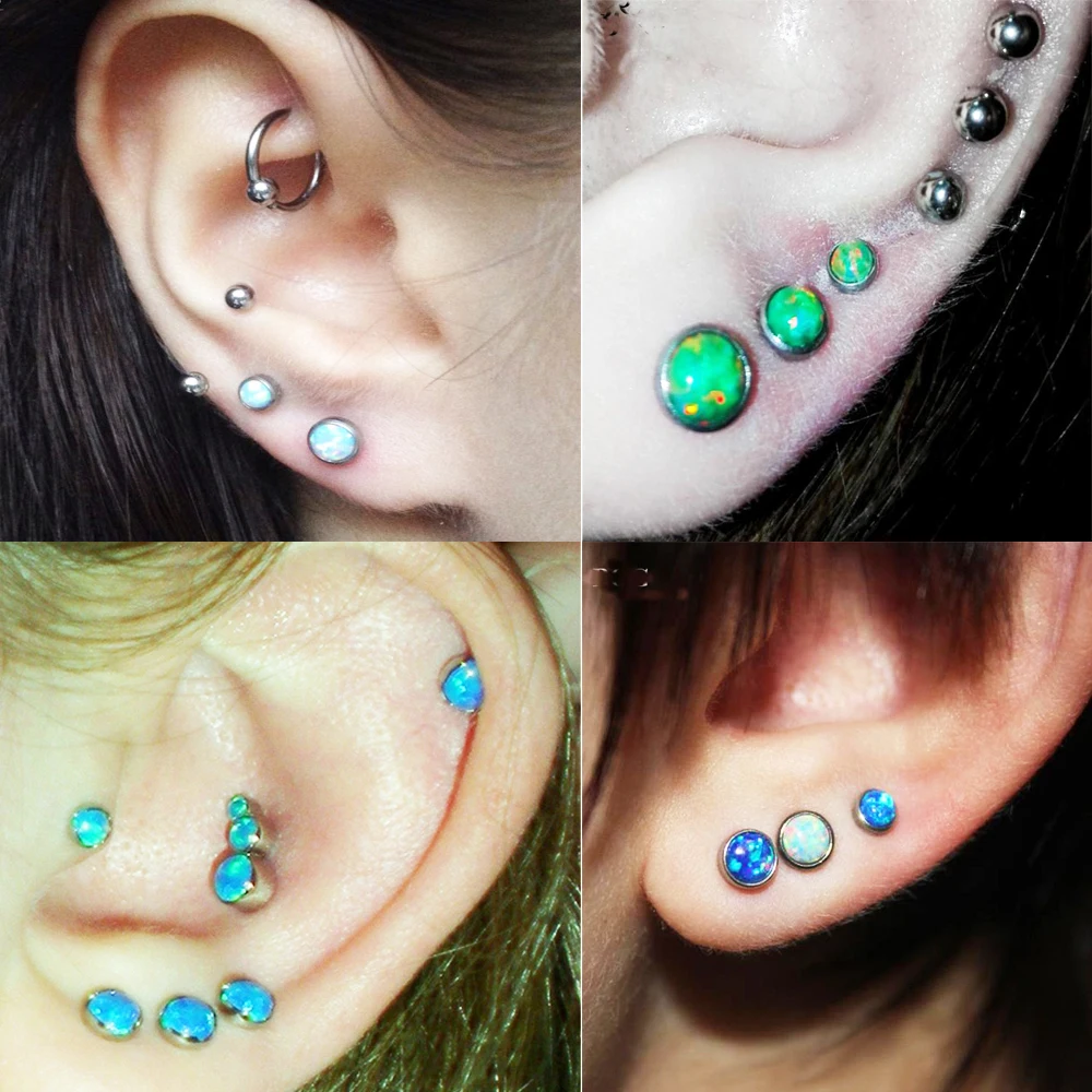 Showlove-1pcs из хирургической стали, серьги-шарики с опалом для пирсинга губ, пирсинг для хрящевой части уха для Козелка, серьги-гвоздики