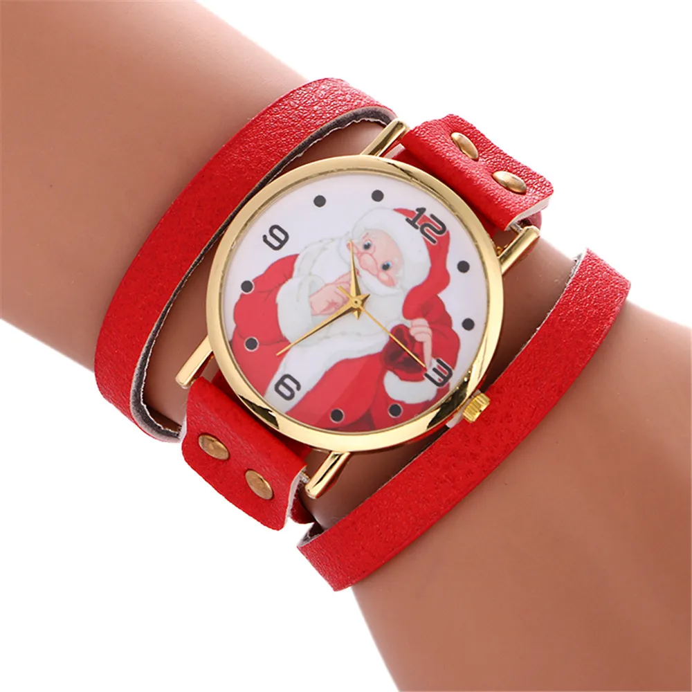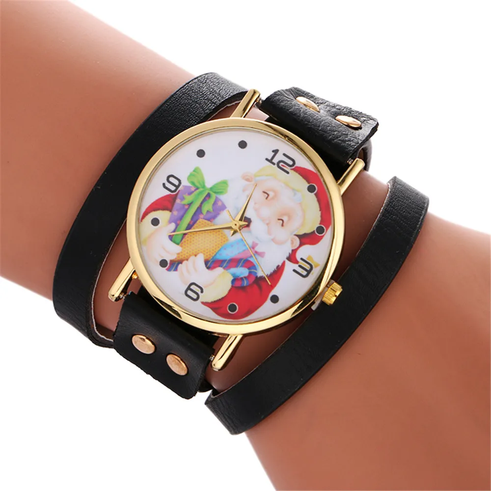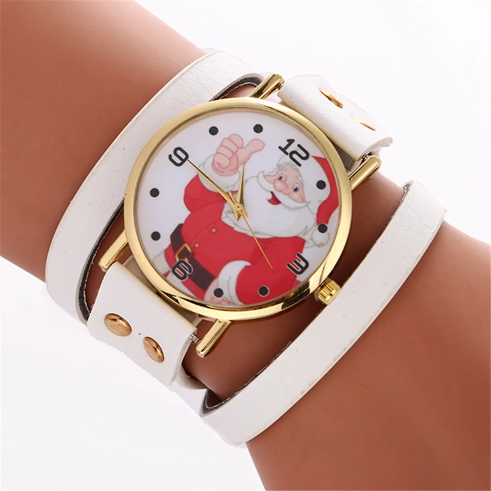 Кварцевые часы с Санта-Клаусом, модные рождественские часы, женские часы с кожаным ремешком, женские часы с ремешком, 2018 W