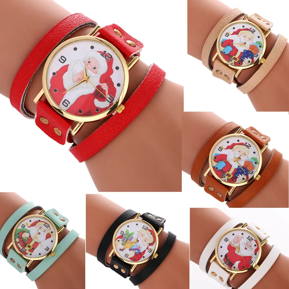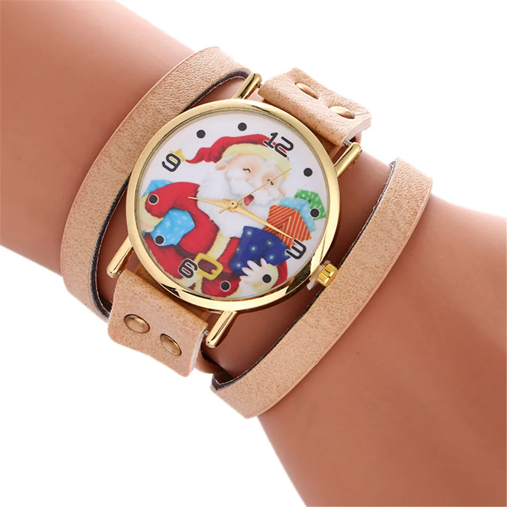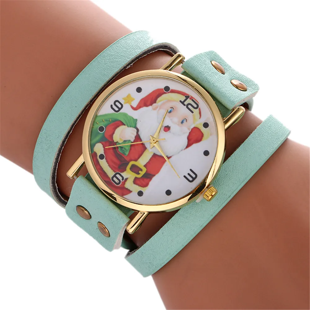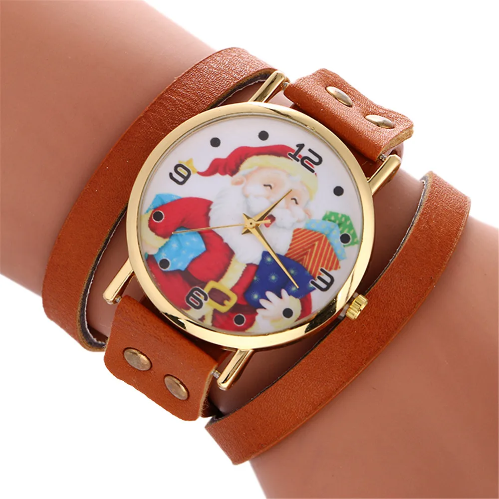 Кварцевые часы с Санта-Клаусом, модные рождественские часы, женские часы с кожаным ремешком, женские часы с ремешком, 2018 W