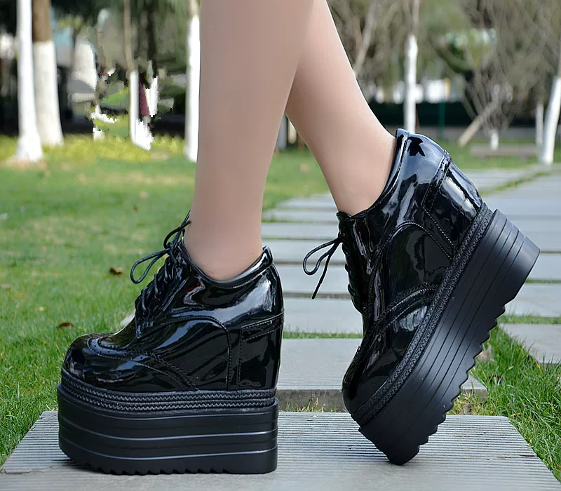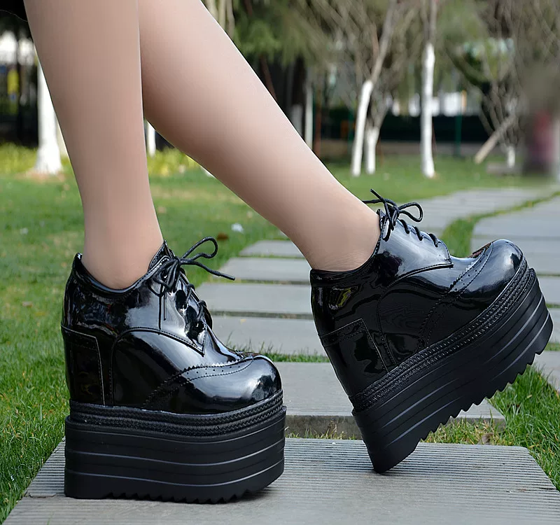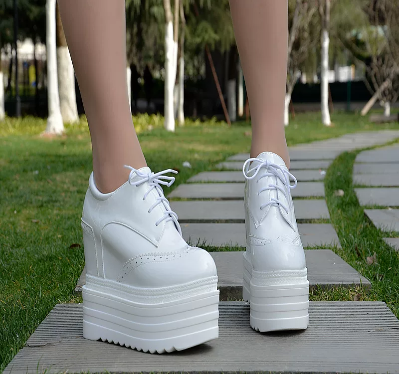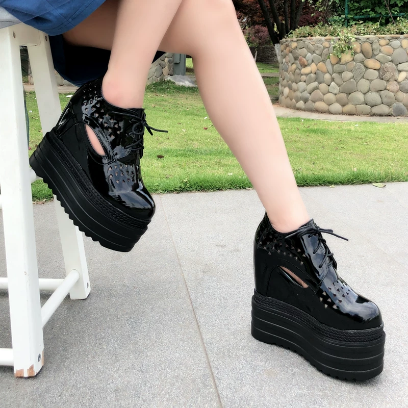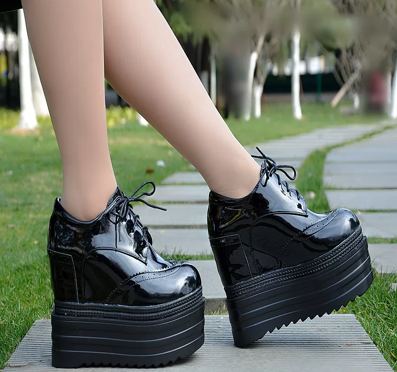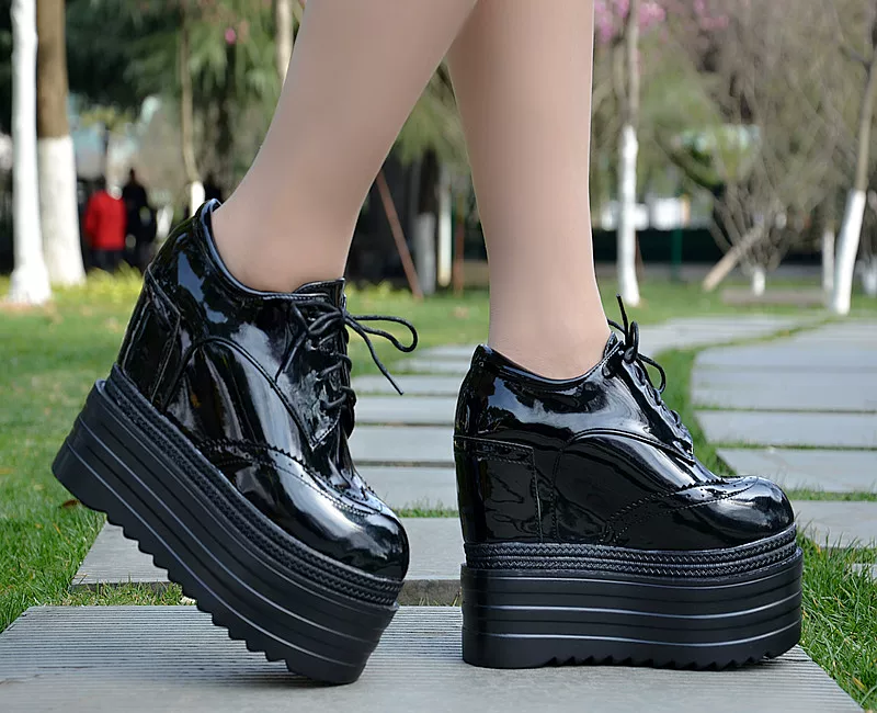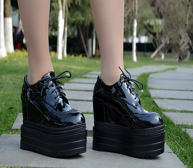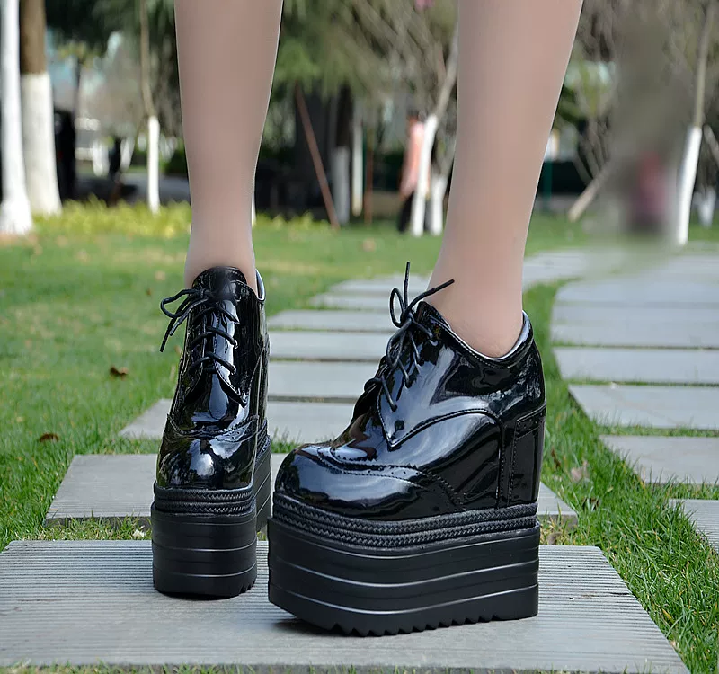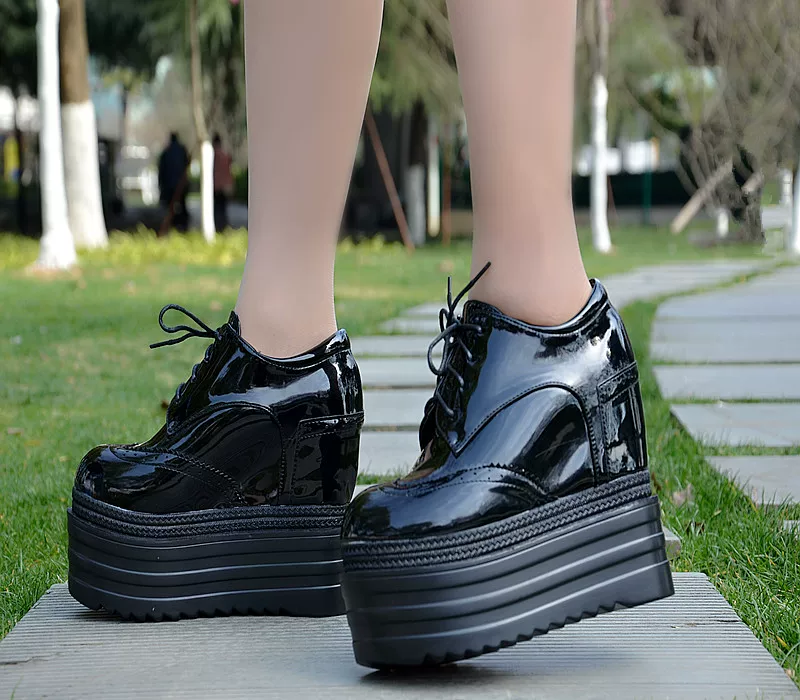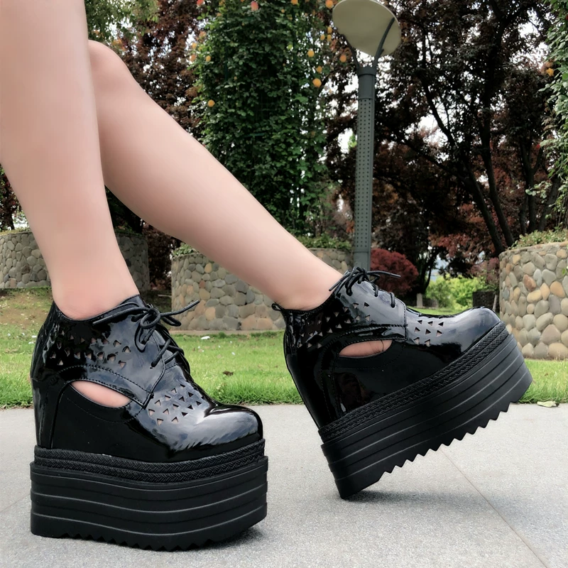 Новая женская обувь на рифленой подошве обувь на очень высоком каблуке 14 см с круглым носком модная женская обувь из лакированной кожи, увеличивающая рост