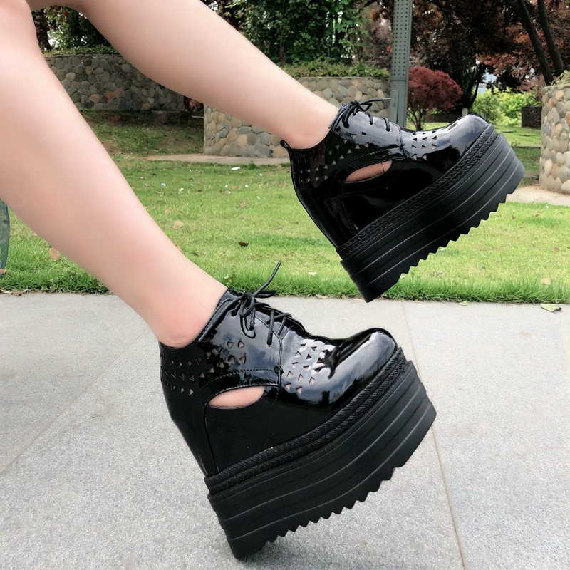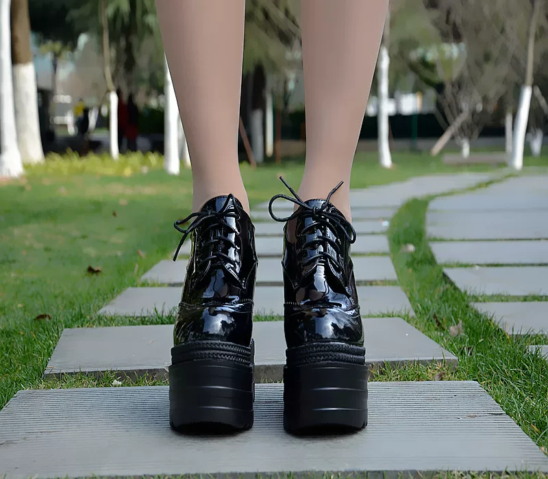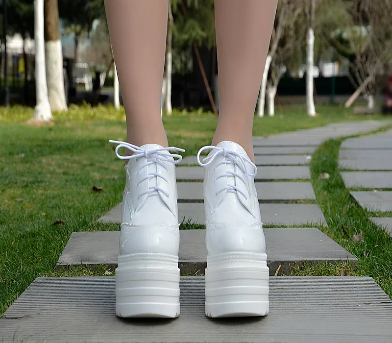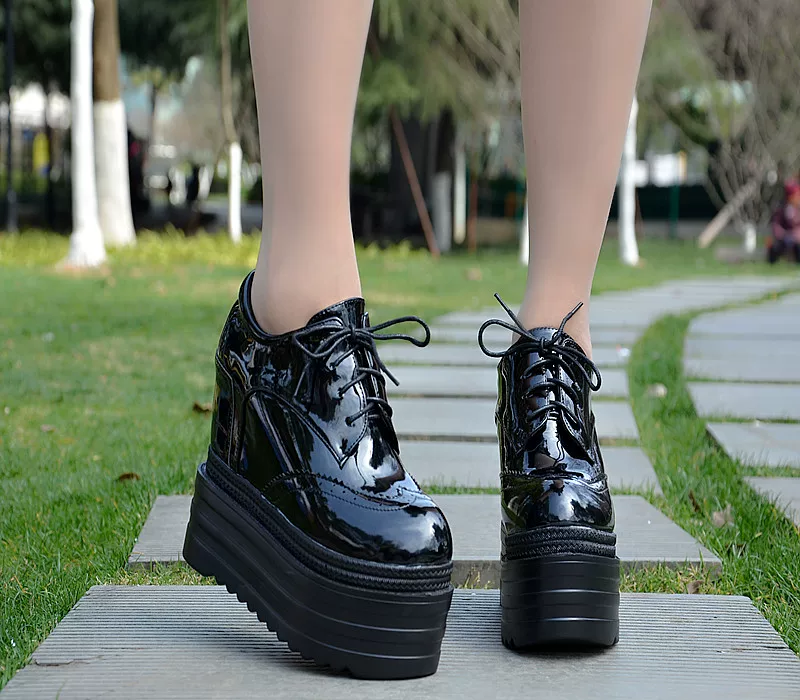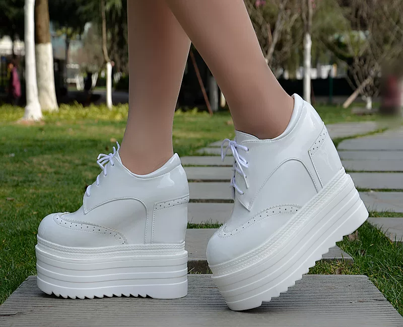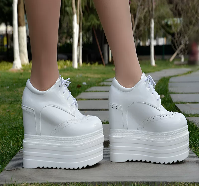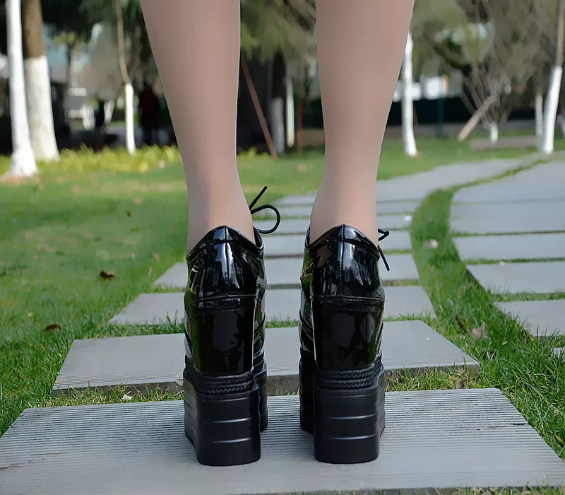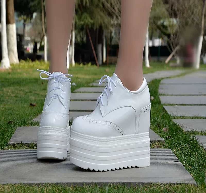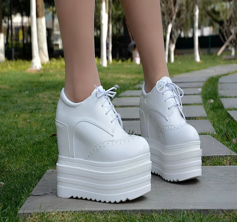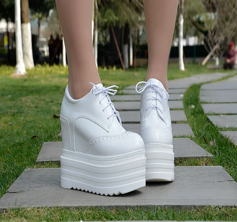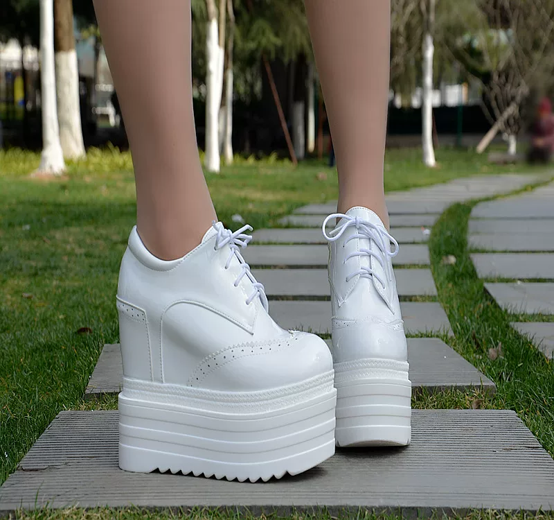 Новая женская обувь на рифленой подошве обувь на очень высоком каблуке 14 см с круглым носком модная женская обувь из лакированной кожи, увеличивающая рост