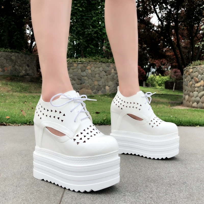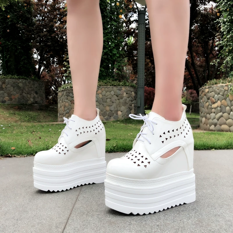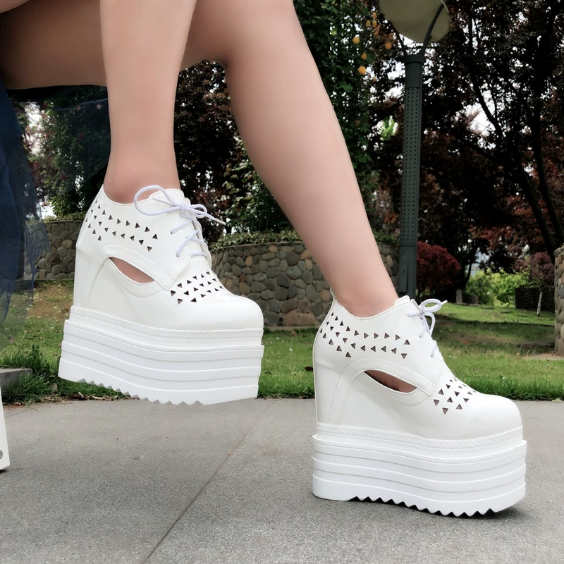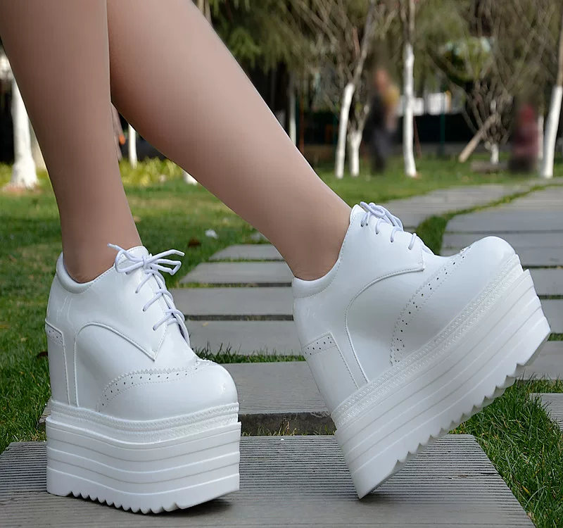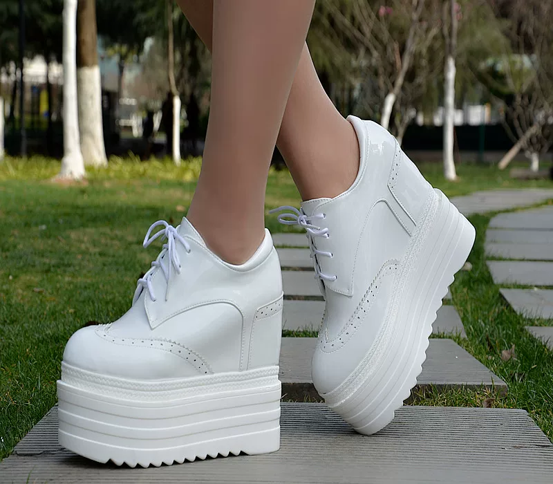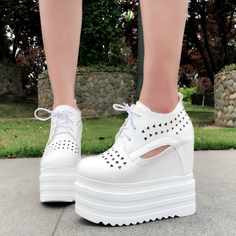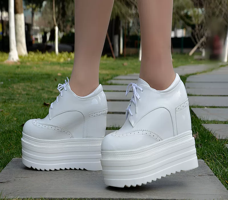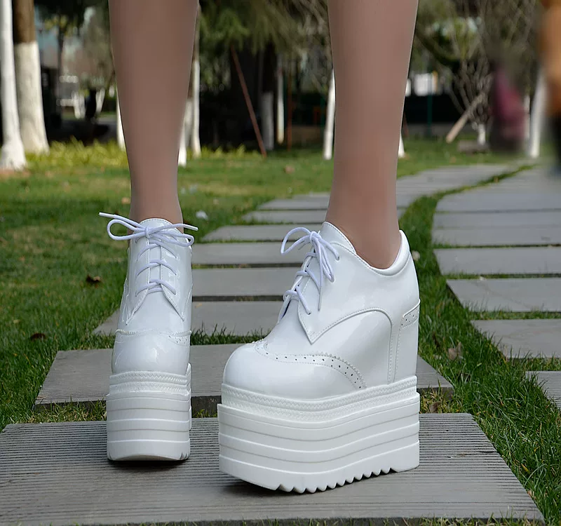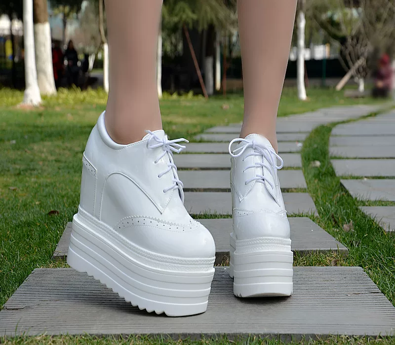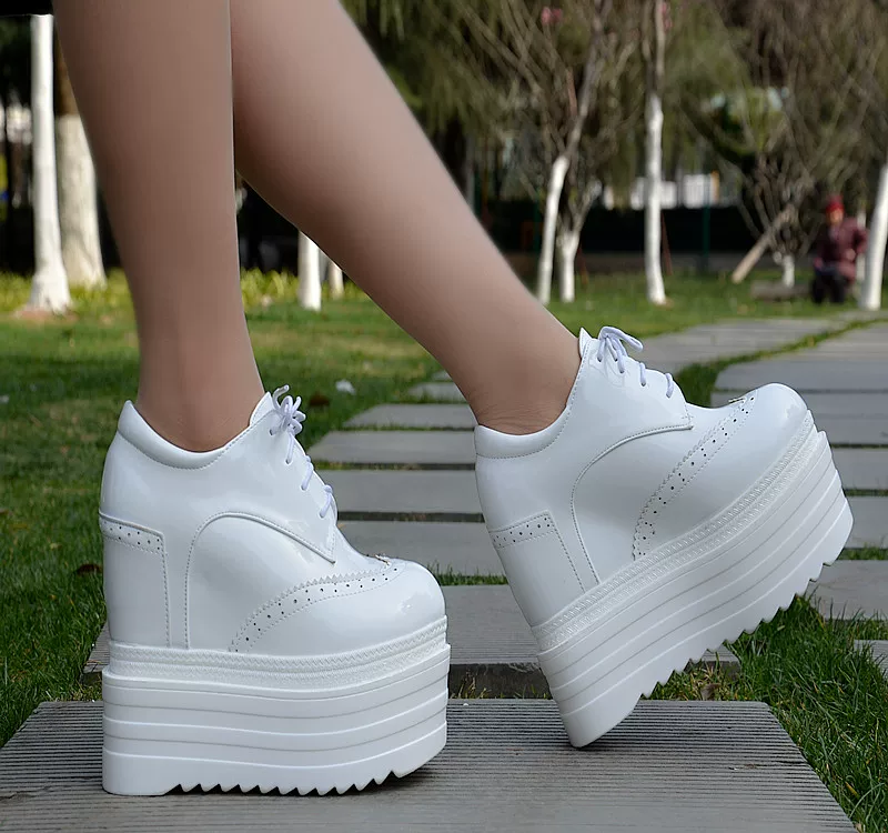 Новая женская обувь на рифленой подошве обувь на очень высоком каблуке 14 см с круглым носком модная женская обувь из лакированной кожи, увеличивающая рост
