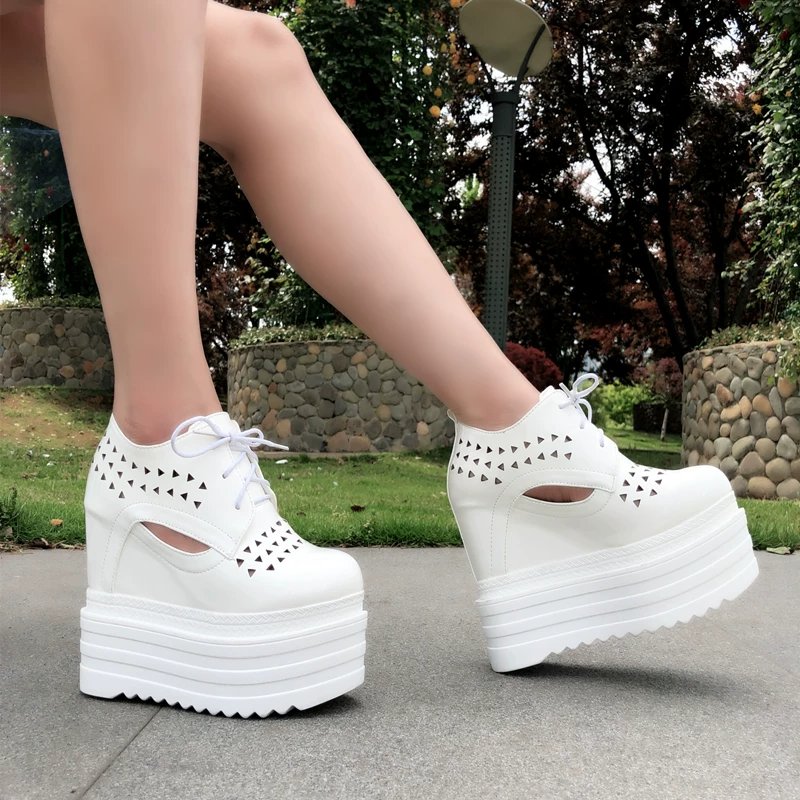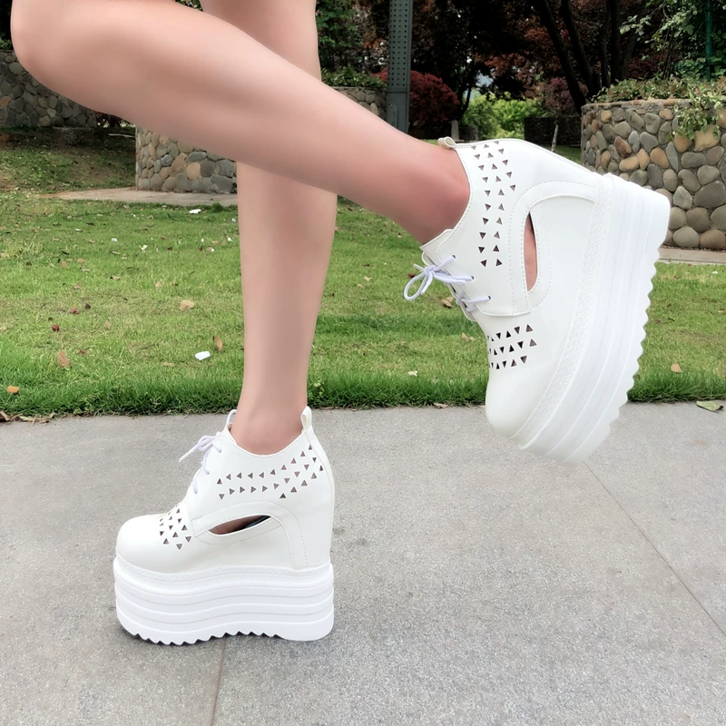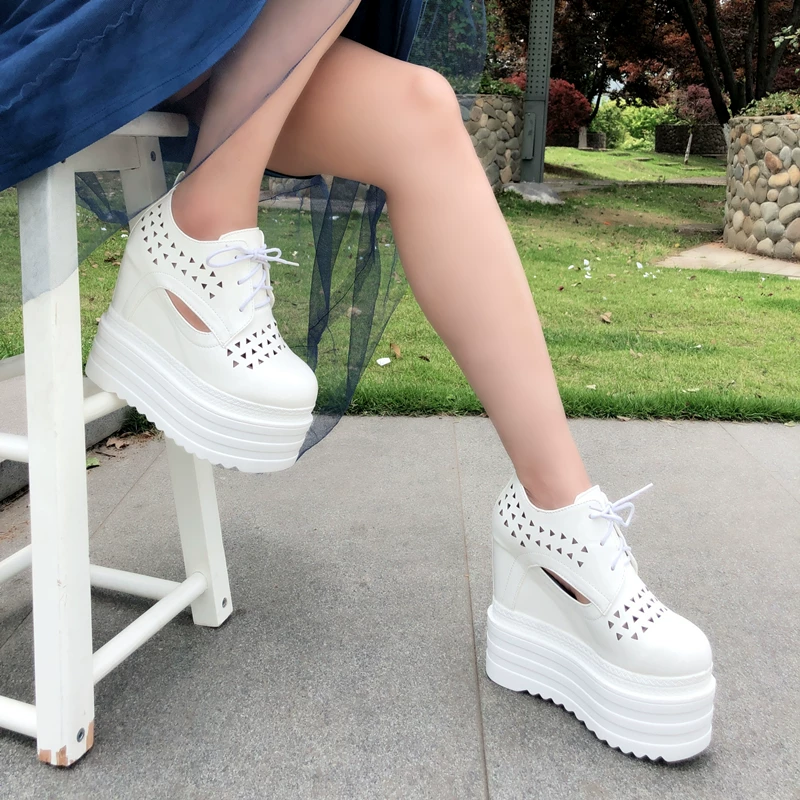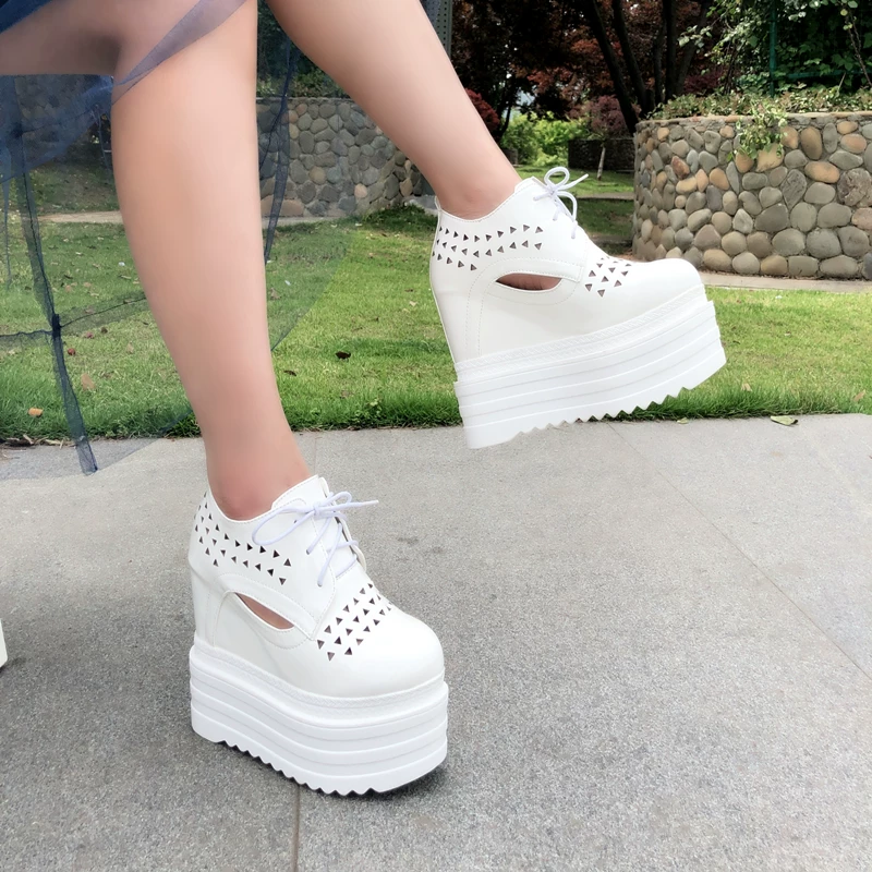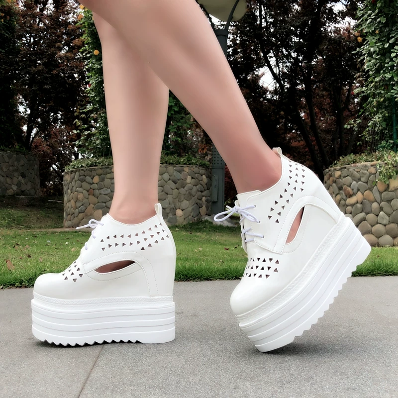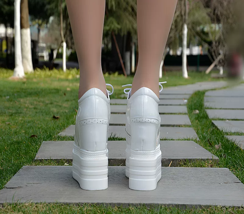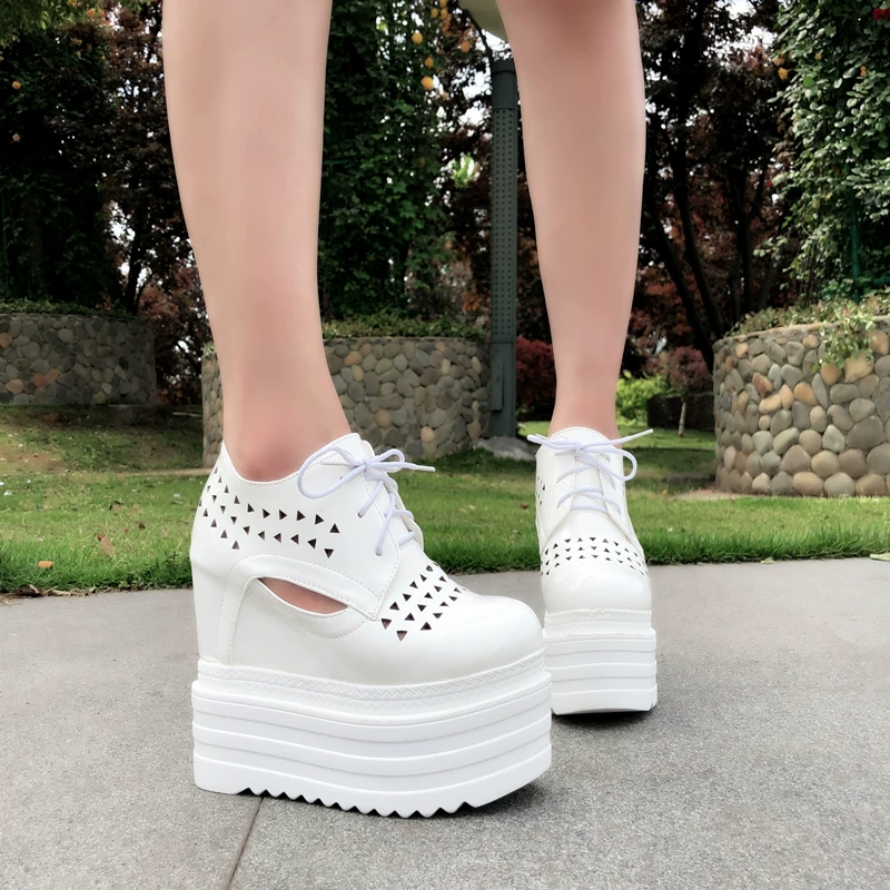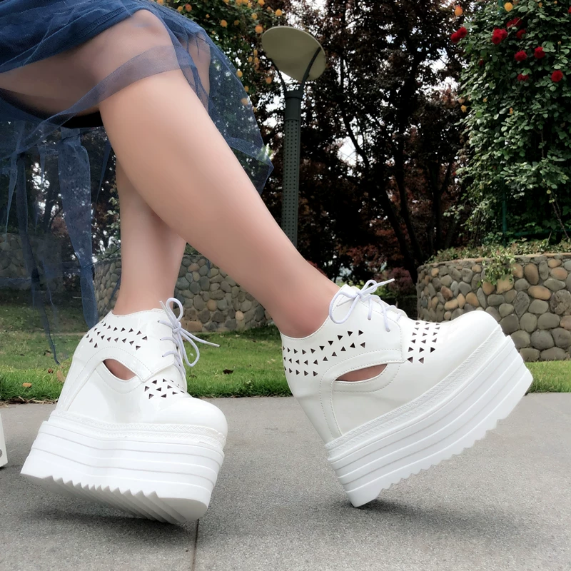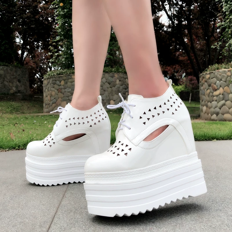 Новая женская обувь на рифленой подошве обувь на очень высоком каблуке 14 см с круглым носком модная женская обувь из лакированной кожи, увеличивающая рост