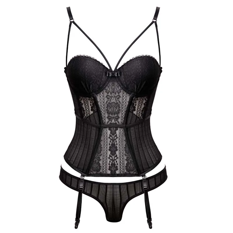 Комплект CINOON готический корсет, бюстье с чашкой и поясом с ремешками, Прозрачное нижнее белье, женские топы, корсеты со стрингами