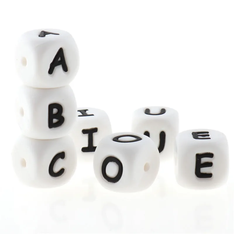 Fkisbox 100 шт.лот 12 мм буквы силиконовые бусины Алфавит Правописание имя не содержит Бисфенол А детское Прорезыватель для зубов ожерелье цепочка для пустышки сделай сам