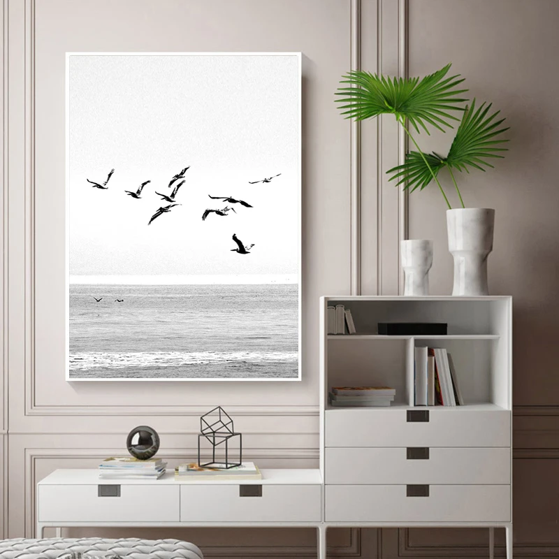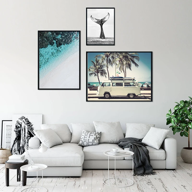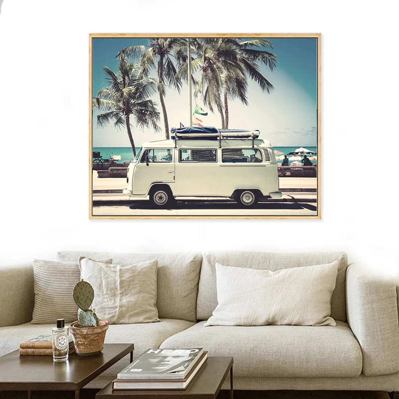 Настенное украшение в скандинавском стиле с изображением морского пляжа автобуса