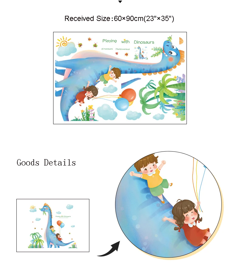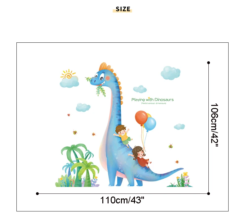 Самоклеящиеся наклейки с мультяшным Наклейка на стену динозавр и ми...