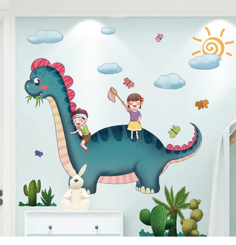 Наклейка на стену динозавр из мультфильмов наклейка в форме животных для маленьких мальчиков детских комнат украшения эстетическое самоклеящиеся обои детская комната Домашний декор