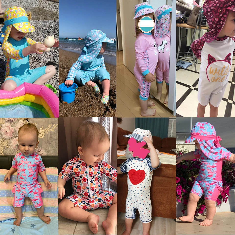 Купальник для девочек, детский купальный костюм для девочек с длинным рукавом и защитой от УФ-лучей, 2021 Милая цельная детская одежда для купания с фламинго, детская одежда для купания